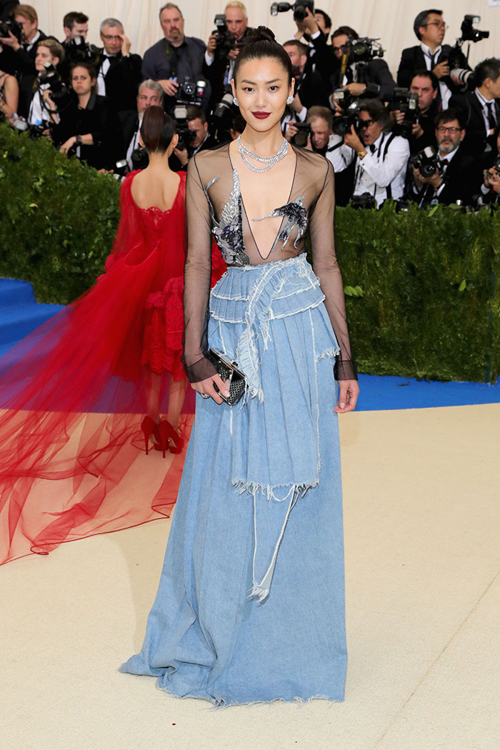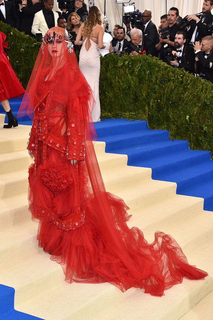 Just how many celebrities have the guts to wear Comme des Garçons on the red carpet? As the night started on the steps of the Metropolitan Museum of Art on Monday night, for the 2017 Met Gala, themed “Rei Kawabubo/Comme des Garçons: Art of the In-Between,” the answer was: Very few. Cohosts Katy Perry and Gisele Bündchen opted for the likes of a different design (cherry red Maison Margiela for Perry, slinky cutout sustainable Stella McCartney for Bündchen); Anna Wintour was, naturally, in Chanel but cohosts Pharrell Williams and wife Helen Lasichanh both turned out in their Comme finest.