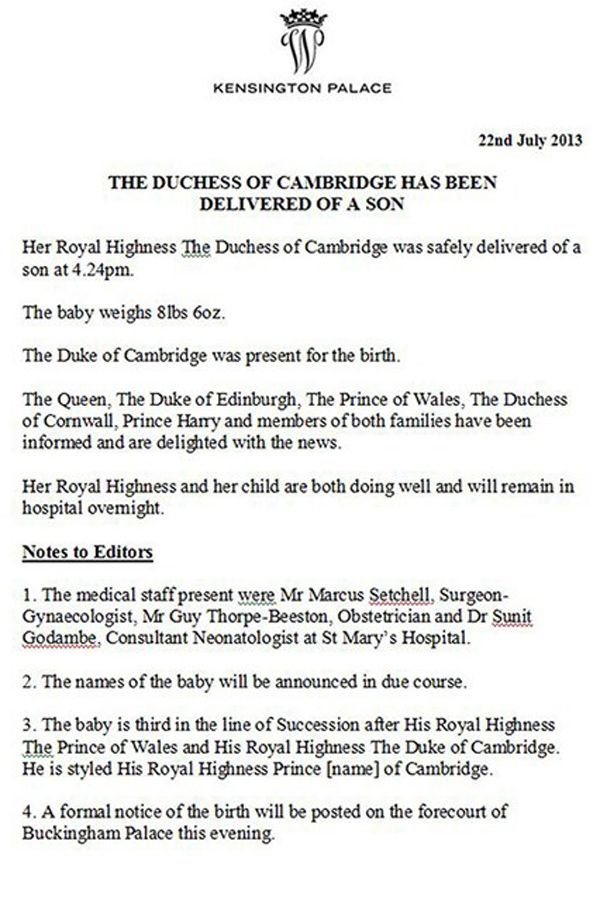 Royal Baby Celebrations - Royal Press Secretary