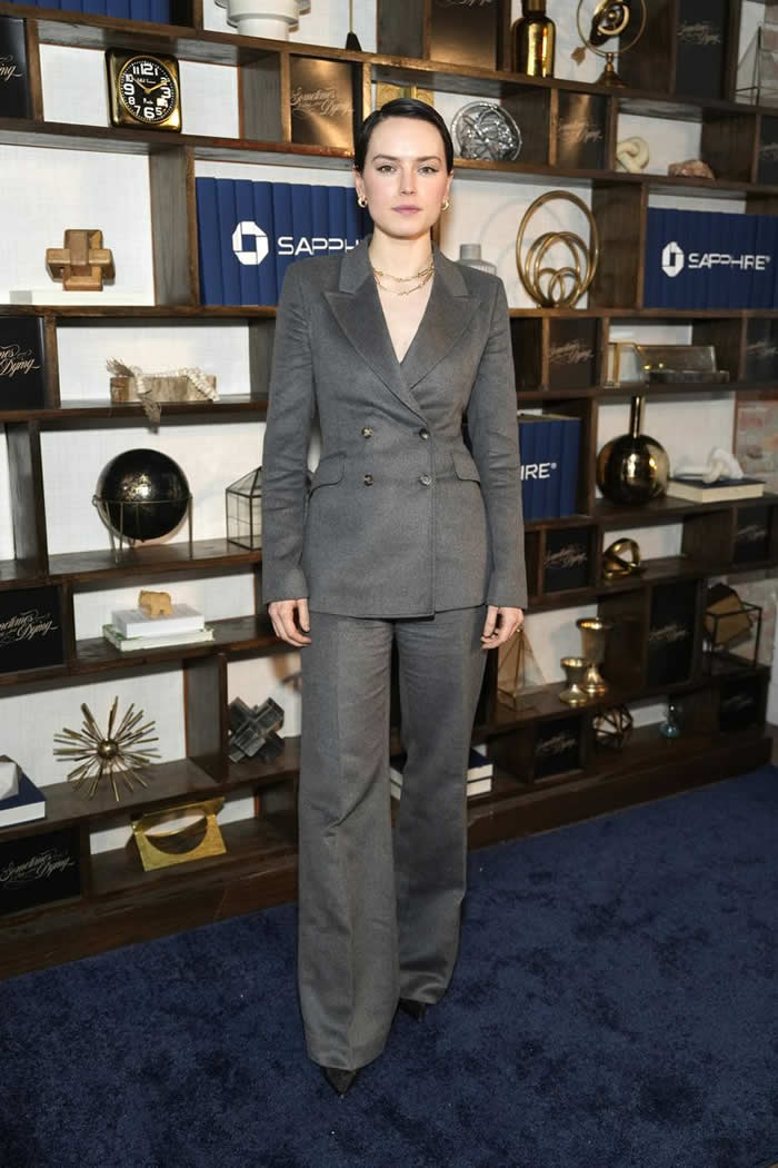 Daisy Ridley, who was another early bird to the Sundance Film Festival, rocked a gray power suit that would work for any boardroom meeting. As the red carpet heats up in Salt Lake City, your favorite stars will continue to bring their strong fashion A-game to the multiple movie screenings and press junkets.