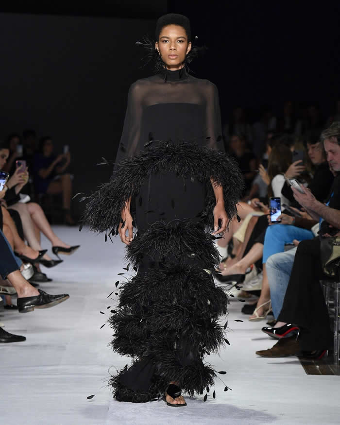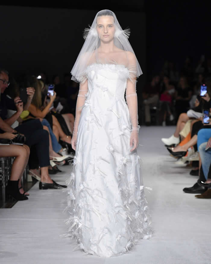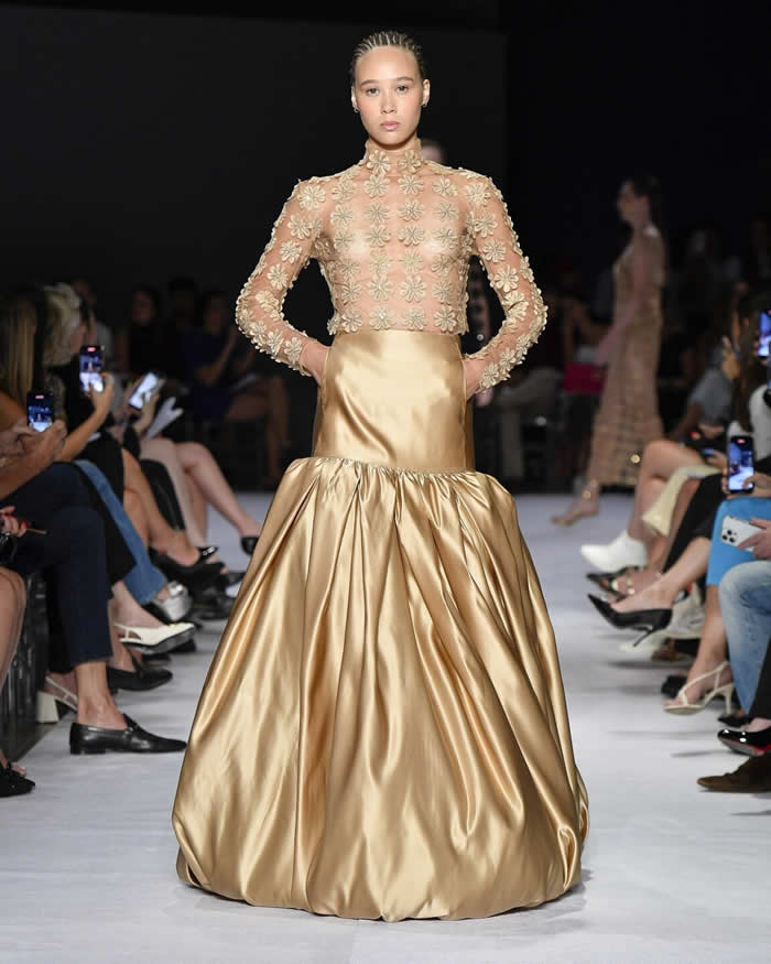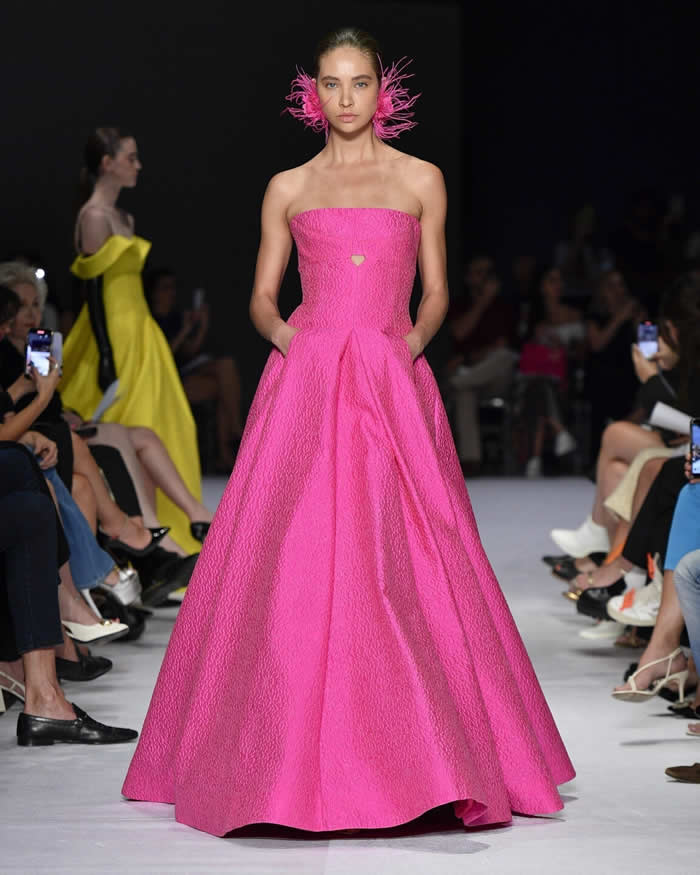 What set the collection apart was not just its beauty, but also the meticulous attention to craftsmanship. The description of each look highlighted the use of three types of interlining, martingales on the shoulders, duchesse satin, feathers, jacquards, and other exquisite materials that exemplified Reinaldo Lourenço’s commitment to unparalleled quality and artistry.