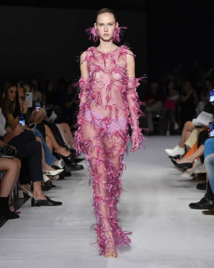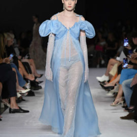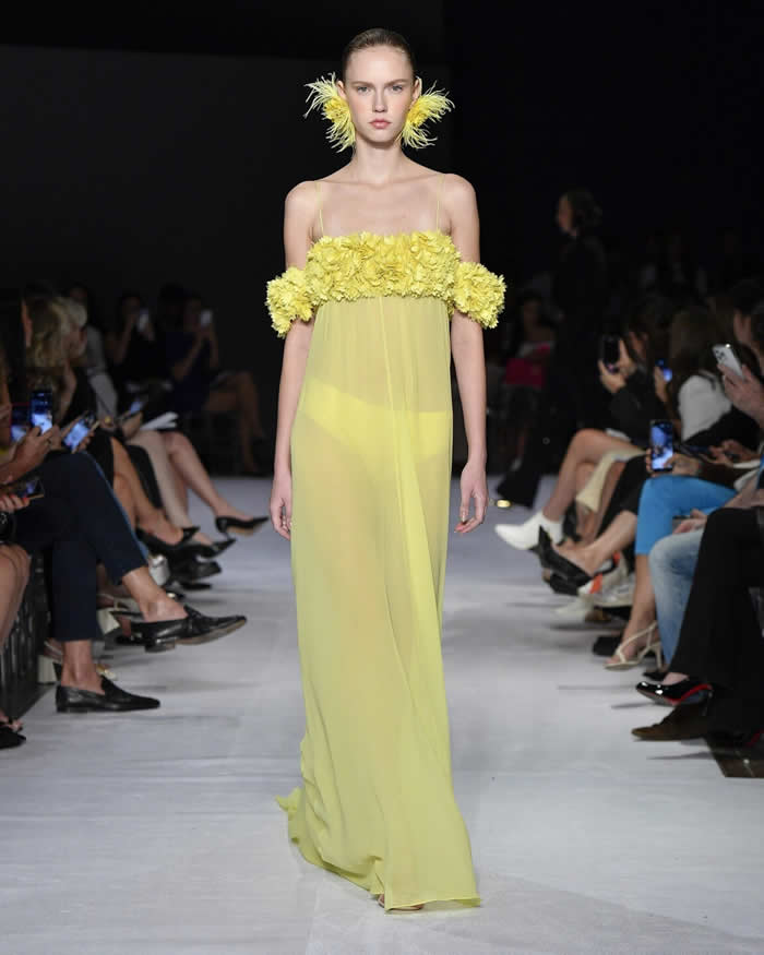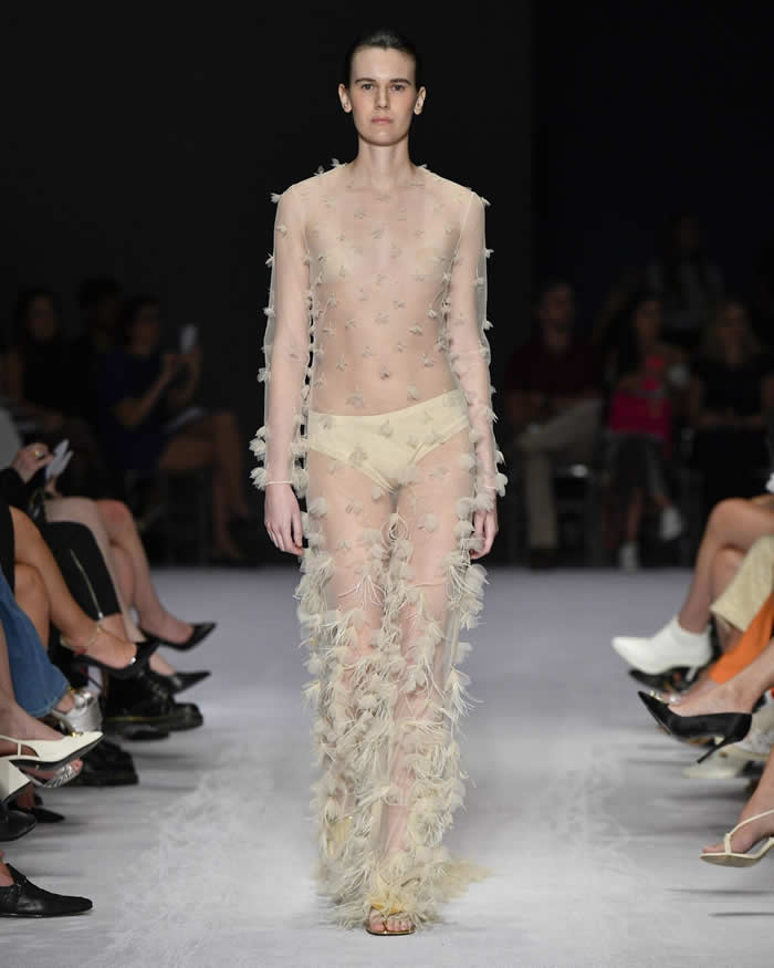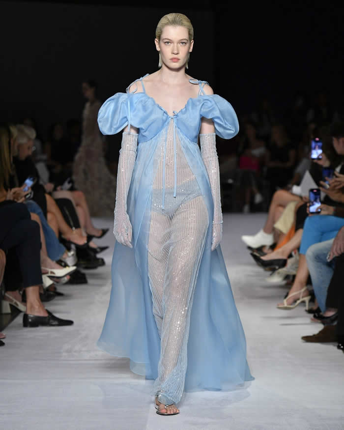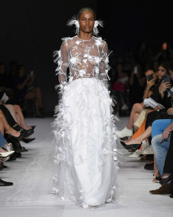 In his press release, written in first person, Reinaldo Lourenço shared his personal inspirations for the collection, ranging from haute couture shows by iconic designers like Lacroix to the storied Maison Patou, as well as drawing from fashion influences spanning the 1950s to the 1990s. The result was a breathtaking display of garments that evoked a sense of fantasy and reverie, with dresses that seemed destined for sunlit days, enchanted evenings, and ethereal sunsets.