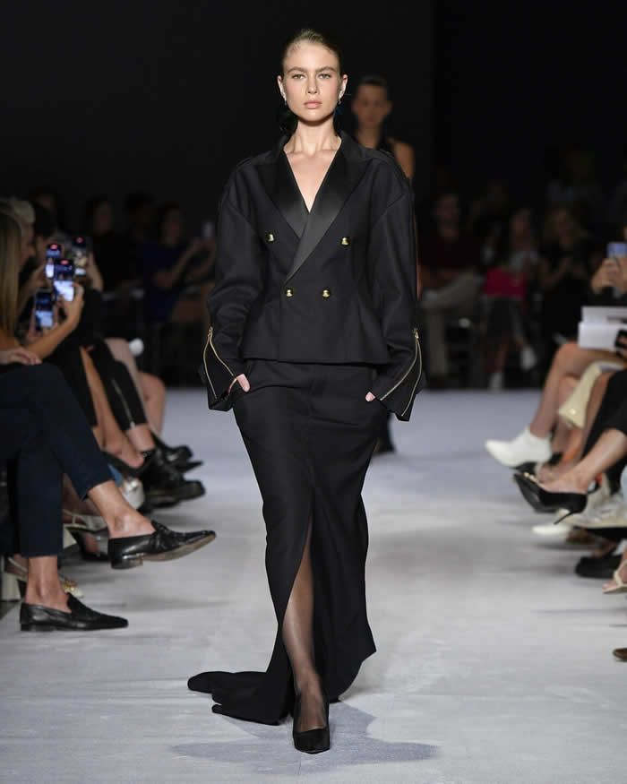 Reinaldo Lourenço, often referred to as “Rei” or “King” by his devoted clientele and fans, has long been known for his sophisticated interpretation of the female silhouette. His signature tailoring, which was evident throughout the collection, is not meant for everyday wear, but rather for special occasions where elegance and glamour take center stage.