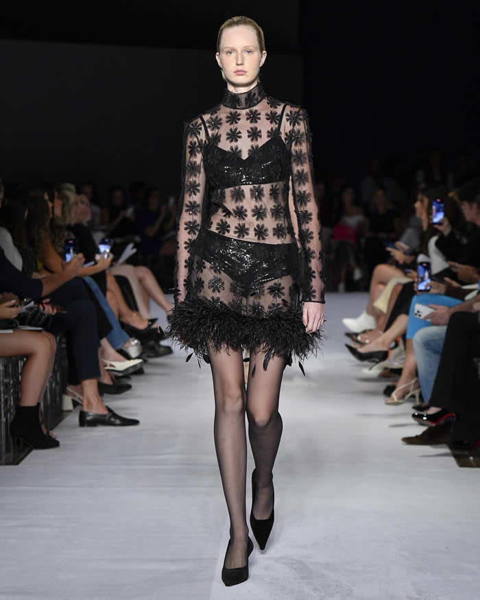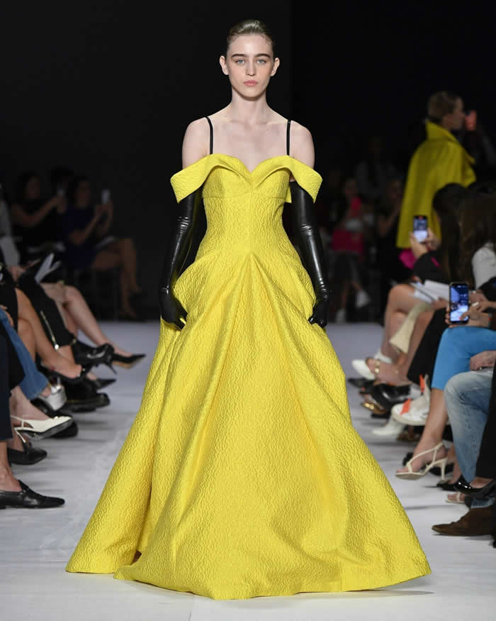 Each of the 44 looks in the collection was meticulously crafted with attention to detail, featuring intricate cuts, masterful sewing techniques, and hand embroidery that transported the audience to a bygone era of fashion where drama and lyricism reigned supreme.