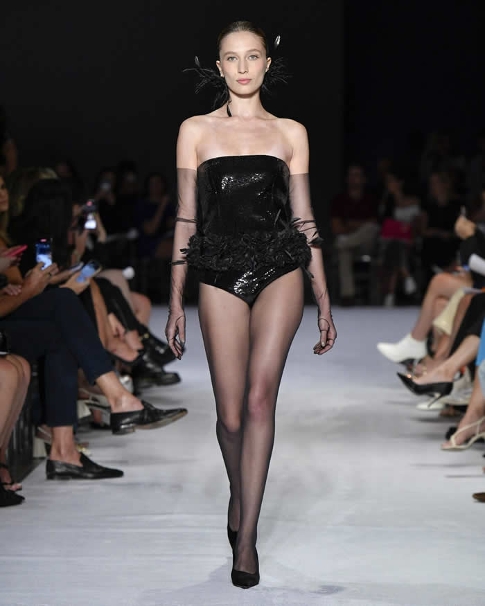 What set the collection apart was not just its beauty, but also the meticulous attention to craftsmanship. The description of each look highlighted the use of three types of interlining, martingales on the shoulders, duchesse satin, feathers, jacquards, and other exquisite materials that exemplified Reinaldo Lourenço’s commitment to unparalleled quality and artistry.