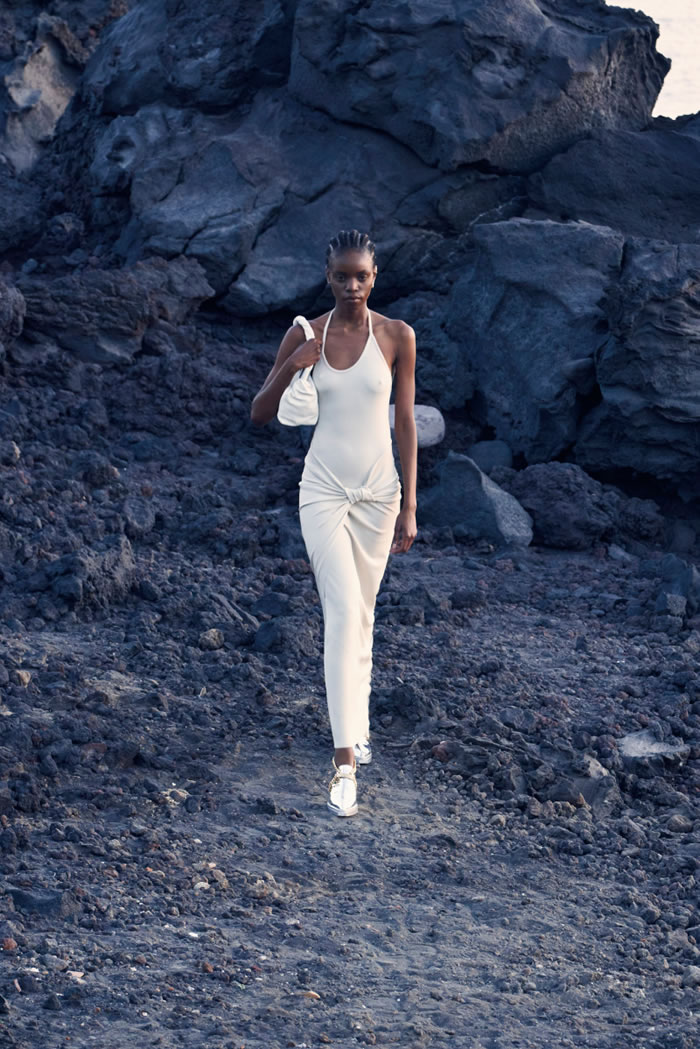 But for all the protective attributes those ideas had to offer a post-pandemic dress sense, it was the softness of draped dresses with twist and knot details that felt most sensitive to our reemergent mentality.