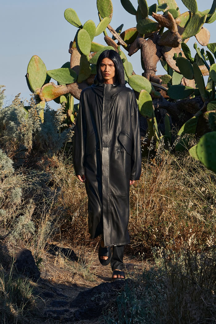 The garment dyes and surface effects he works into his streetwear came out reminiscent of things you might see in a volcanic landscape, while lighter cap metal branding featured throughout the collection set Alyx’s industrial character in stone.