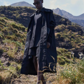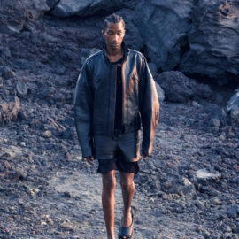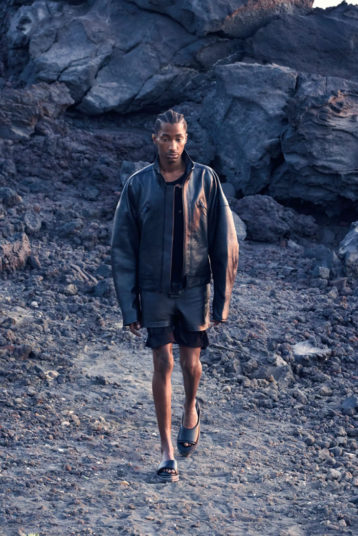 The garment dyes and surface effects he works into his streetwear came out reminiscent of things you might see in a volcanic landscape, while lighter cap metal branding featured throughout the collection set Alyx’s industrial character in stone.