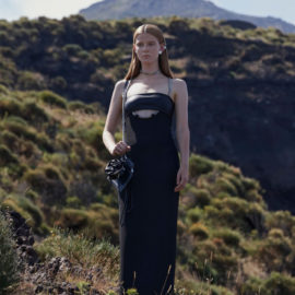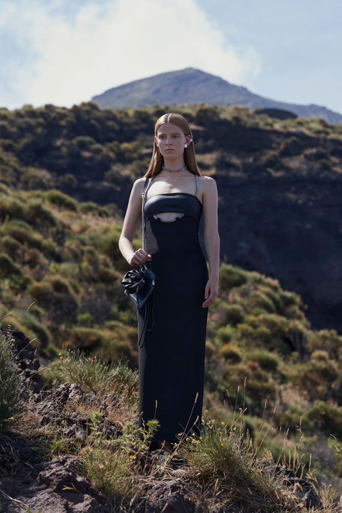 Shot by Jordan Hemingway through the blurry 1970s warmth of 16mm film, but on the Mars-like, black volcanic beaches of Stromboli, the idea of the beach felt at once foreign and nostalgic.