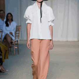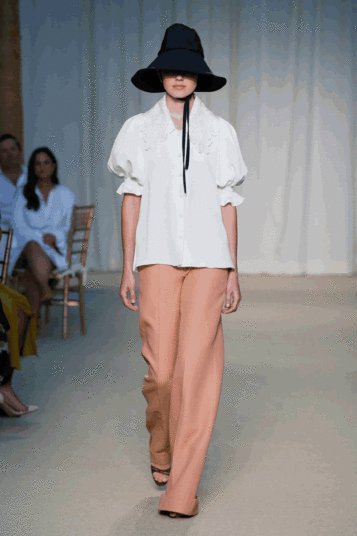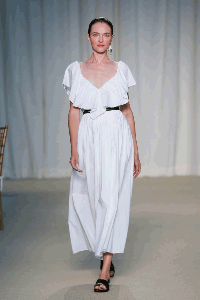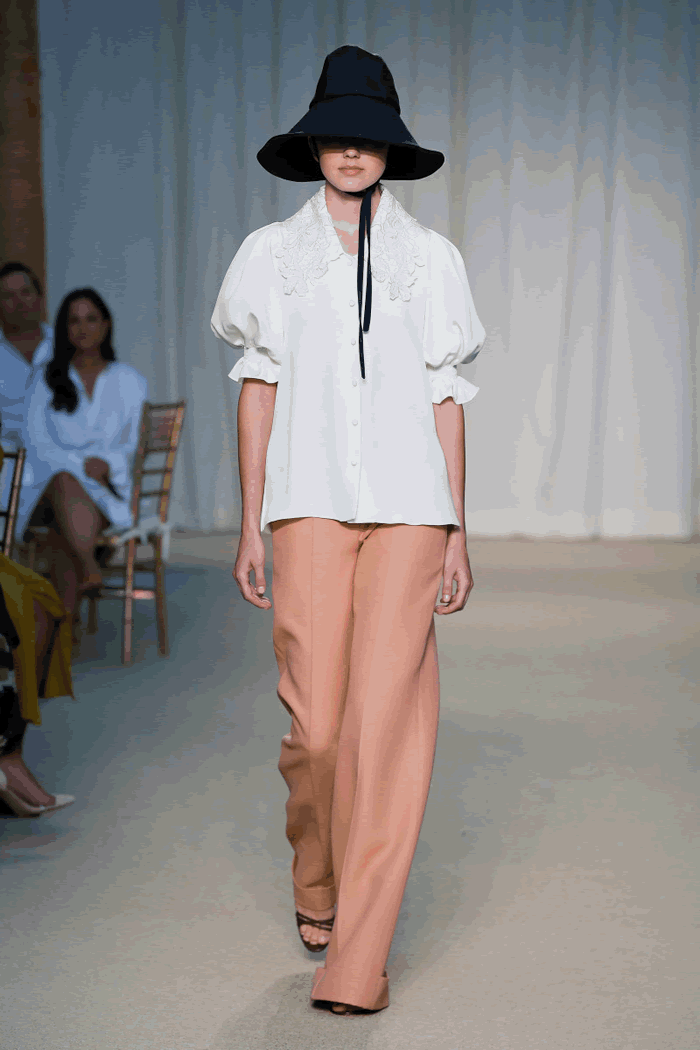 His shirting has cult status (an oversized banker blue style with appliquéd white lace was a standout), and dressy-casual pieces like a superbly tailored ivory silk wool vest and shorts “suit” struck the right “are we working from home or aren’t we?” note.