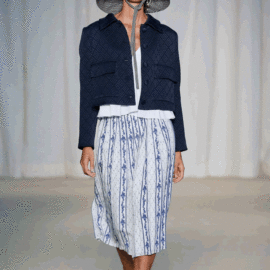 “This is the first time I’ve been inspired by a single person,” said Lippes of his Instagram connection. “It’s not just her style, it’s her outlook on life, and joy coming out of the pandemic.” She’s “thoughtful but optimistic.” You might say the same about these clothes.