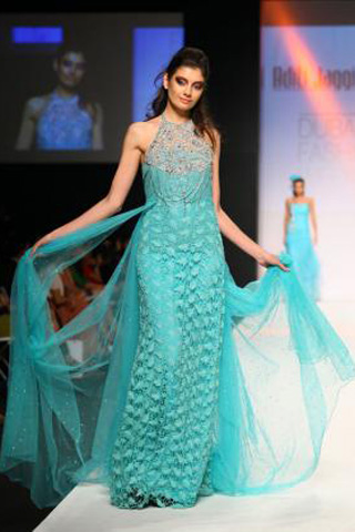 Opulence elaboration in Aditi Jaggi FW 2011 collection showcased at Dubai Fashion Week. Rich fur and fabrics in latest Fall/Winter fashion designed by Aditi jaggi. She also used tulle and squined fabrics in her latest collection for season’s fashion. See collection of luxurious dresses with inspiring fashion design.