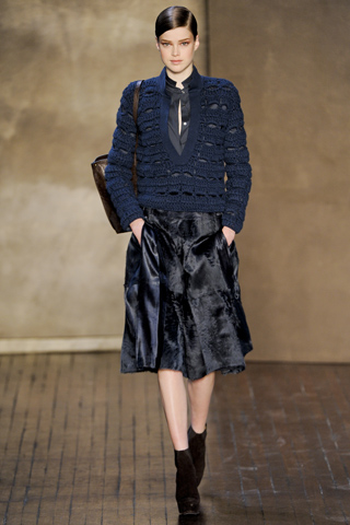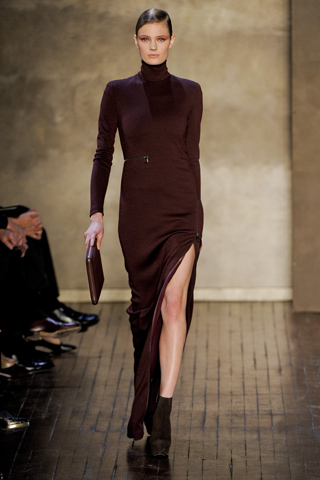 The rest of the fall ready-to-wear 2011 collection by Akris was a pure luxury, laden with expensive wool jerseys and double-face cashmeres worked in warm autumnal colors. There was a rustic softness in beginning with some divine chunky cashmere knitwear. The only adornment was the zipper detail front to back on one shoulder that reflected an utmost type of modern luxury. See the complete latest collection by Akris ready to wear Fall/Winter 2011 show at Paris Fashion Week RTW 2011-2012.