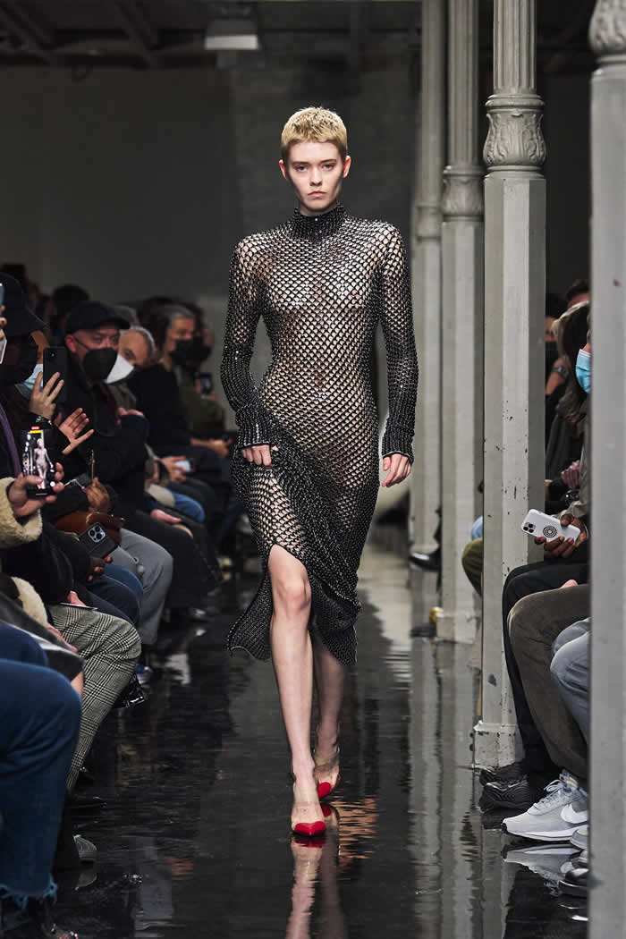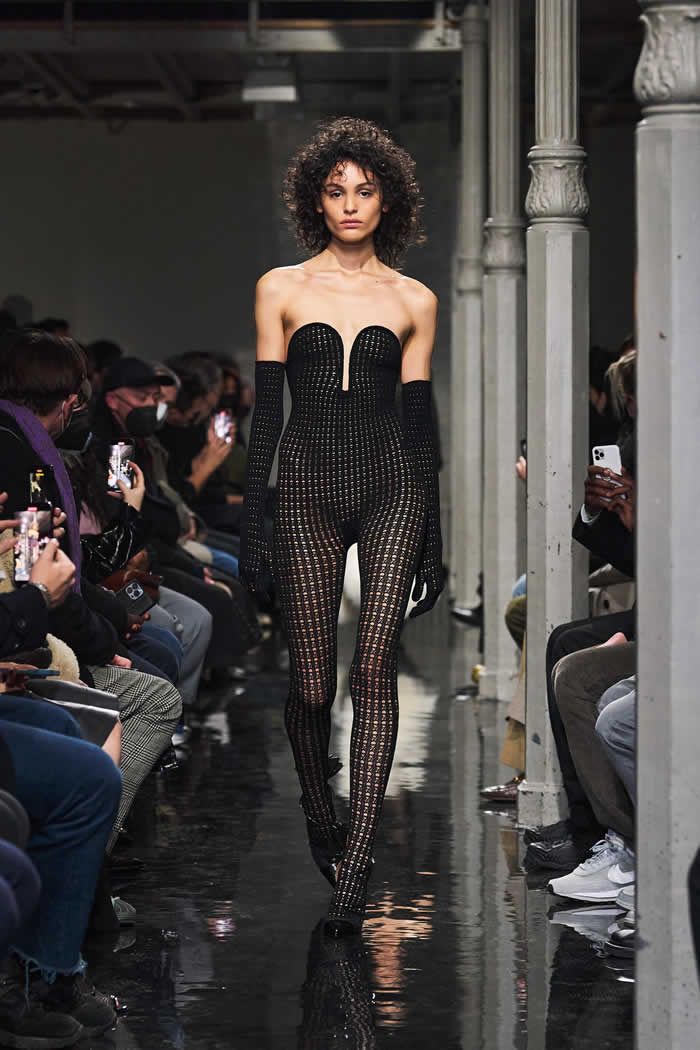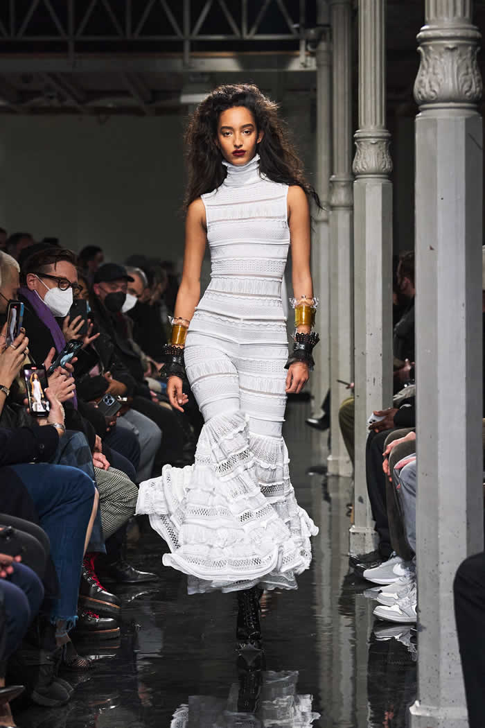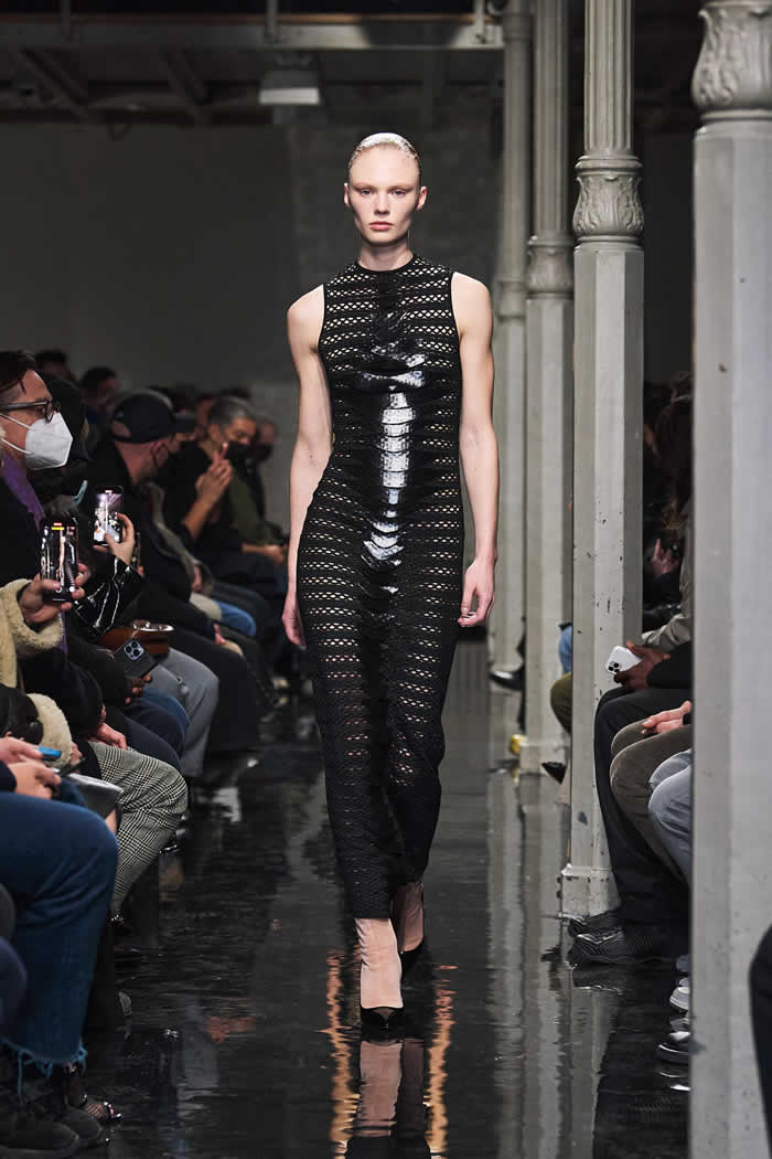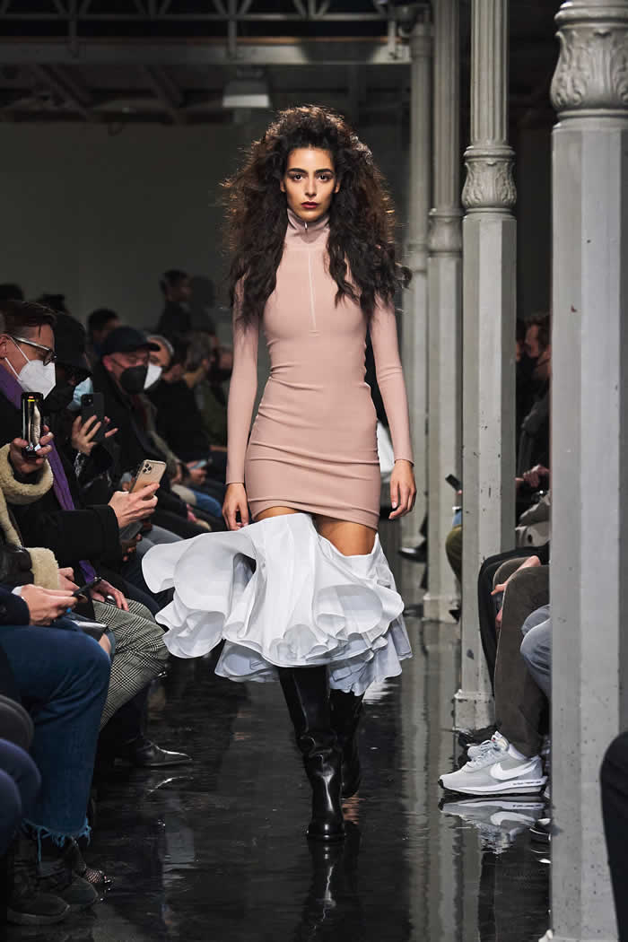 If they inspired a surrealist streak in the collection, it was there in the biker and flight jackets Mulier morphed into body-con dresses, padding and all, or the dress made entirely out of Alaïa multi-buckle belts. Young people are loving body-con again, and Alaïa wrote that book.