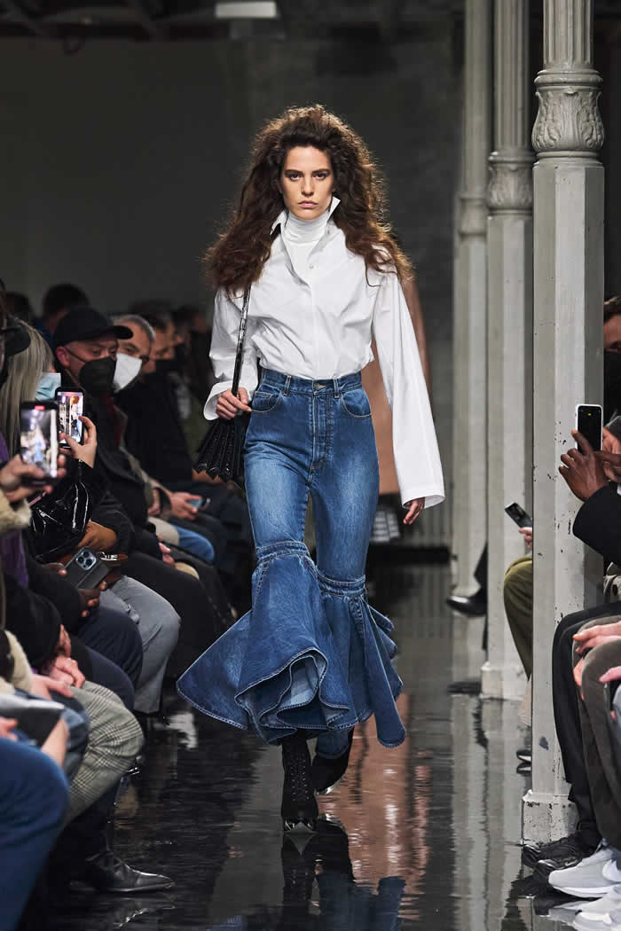 Beyond Alaïa’s loyal following, Mulier is faced with bringing the brand into the consciousness of new generations. His method seems to be this: Stick to the codes, but turn up the volume. He did so in a collection largely dedicated to bell-bottoms derived from Azzedine Alaïa’s Spanish skirt shapes.