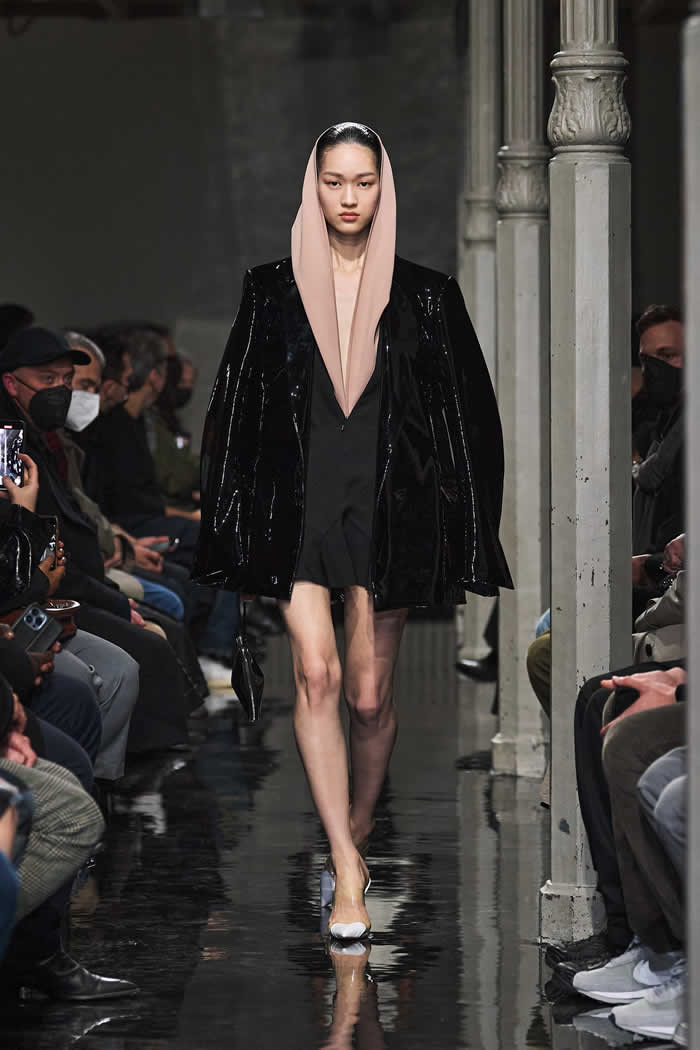 A variety of coats showed what a new Alaïa could also be: Big, enveloping shapes borrowed from the gentleman’s wardrobe and sculpted in thick wools, then nipped-in delicately at the bottom of the back to define a feminine silhouette.