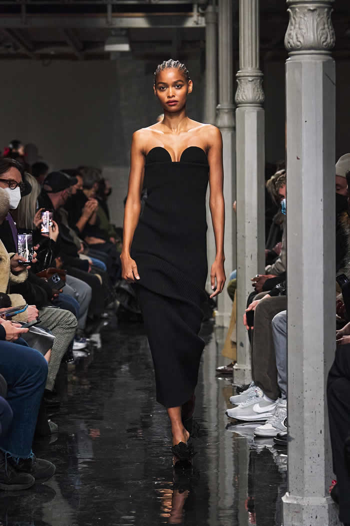 If they inspired a surrealist streak in the collection, it was there in the biker and flight jackets Mulier morphed into body-con dresses, padding and all, or the dress made entirely out of Alaïa multi-buckle belts. Young people are loving body-con again, and Alaïa wrote that book.
