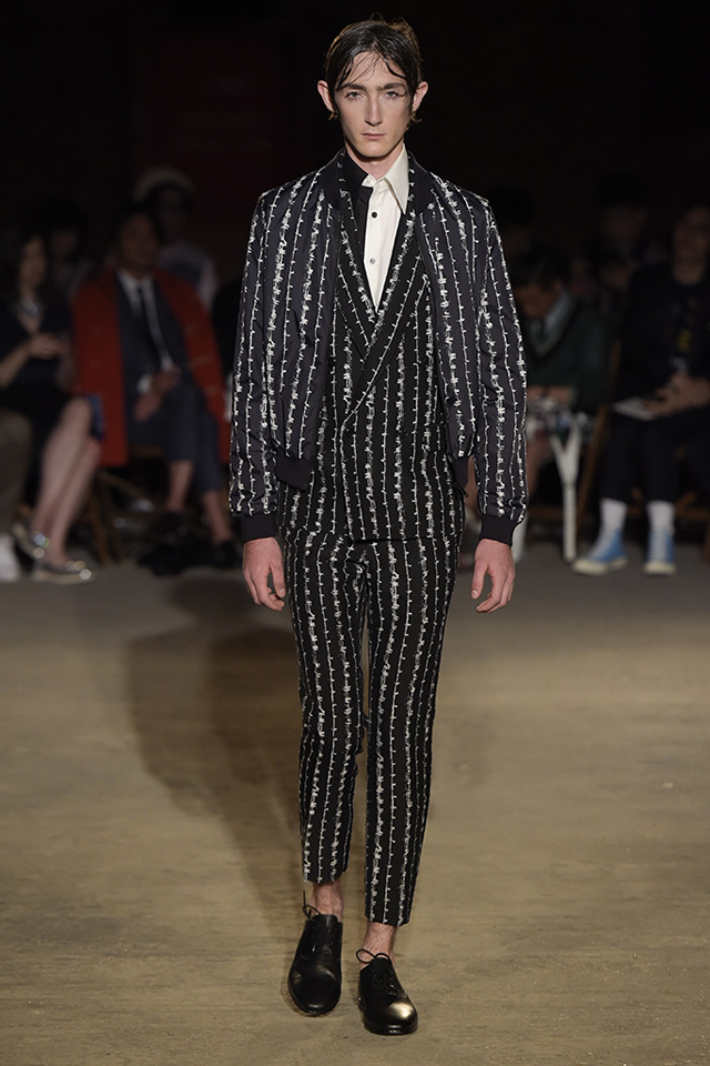 Suits were trim, with a matching bomber tossed on top as a youthful, sporty take on the three-piece.