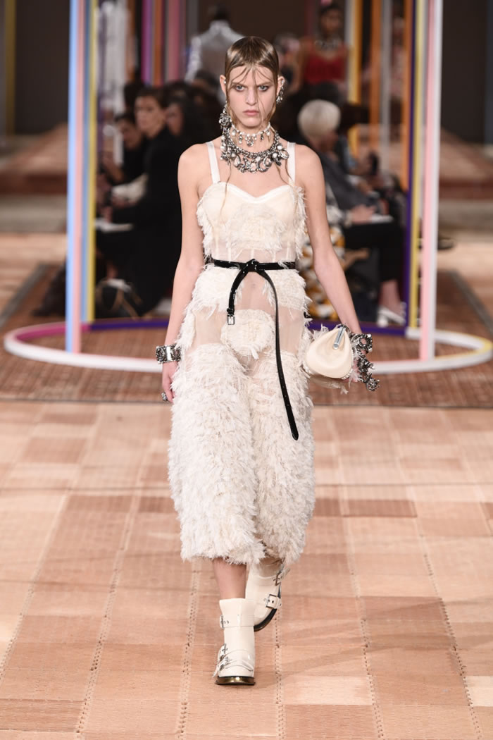 Backstage before her show, Alexander McQueen’s Sarah Burton talked about her desire to deliver an optimistic collection, a notion expressed by a number of designers this season. “So many terrible things happen in the world. We should celebrate people and fashion and creativity,” she said. “I wanted to celebrate beauty and femininity. I wanted to do an uplifting collection.”
