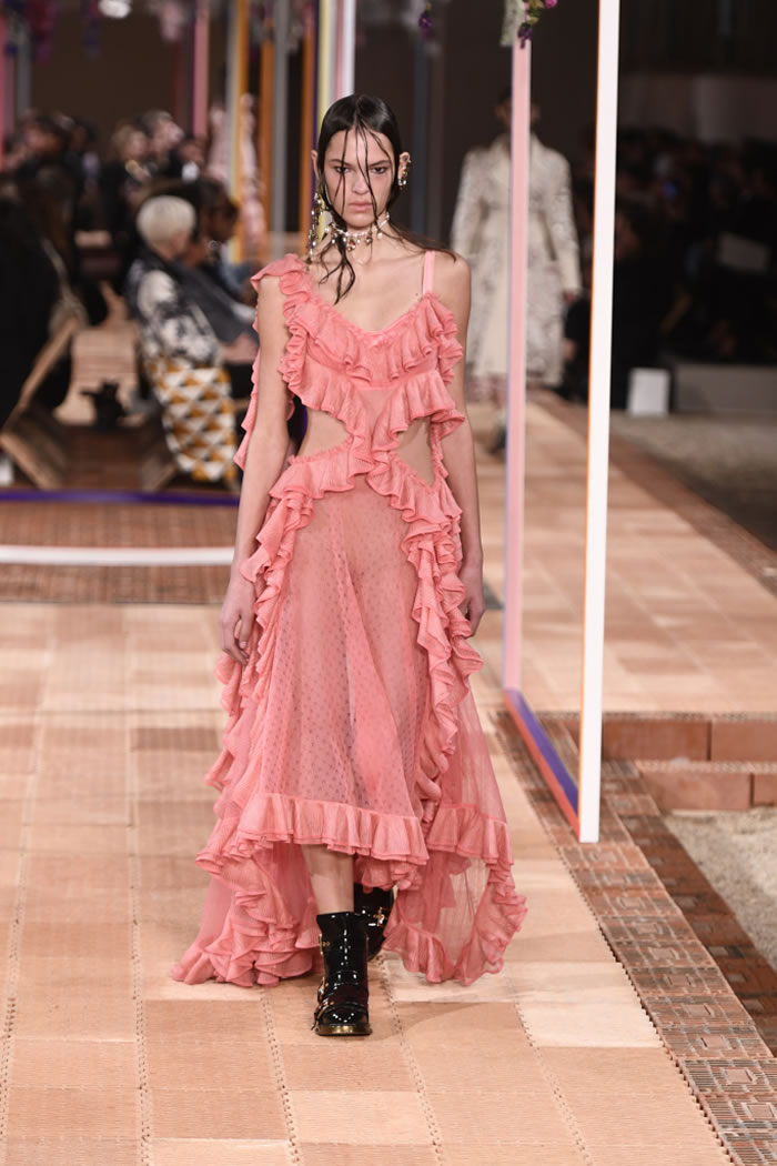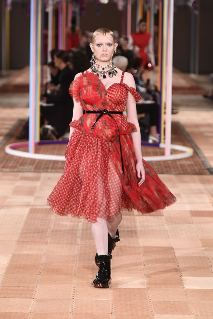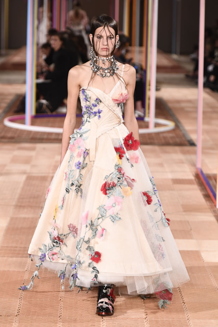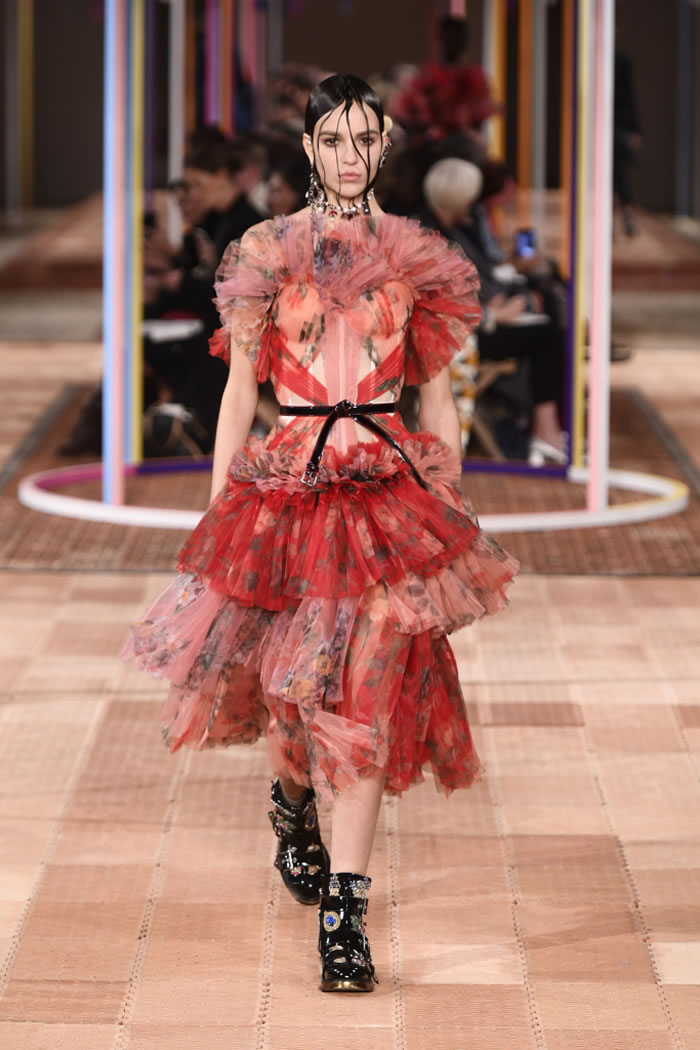 Designer Sarah Burton talked about her desire to deliver an optimistic collection. “So many terrible things happen in the world. We should celebrate people and fashion and creativity.”
