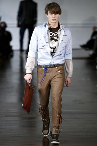 Alexis Mabille‘s latest collection of menswear for fall and winter 2011 is a long lasting trend not limited to one season. Scottish style of menswear is dashing and masculine to make you look different and handsome. Alexis Mabilles Fall/Winter 2011 show started with "Choose Life"assertive. Alexis Mabilles menswear collection suites best for 2011 fashion.