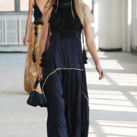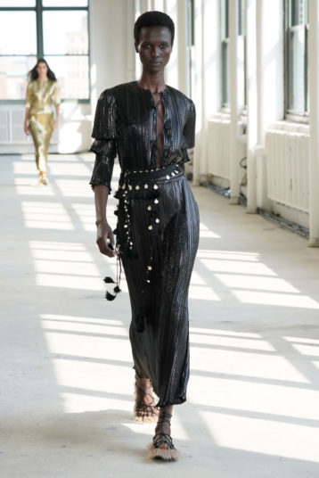 Altuzarra said his main objective with the collection was to create emotion, which happened as soon as the models came out, announcing themselves with the jingle-jangle of their coin sandals. Hello beauty, hello fashion!