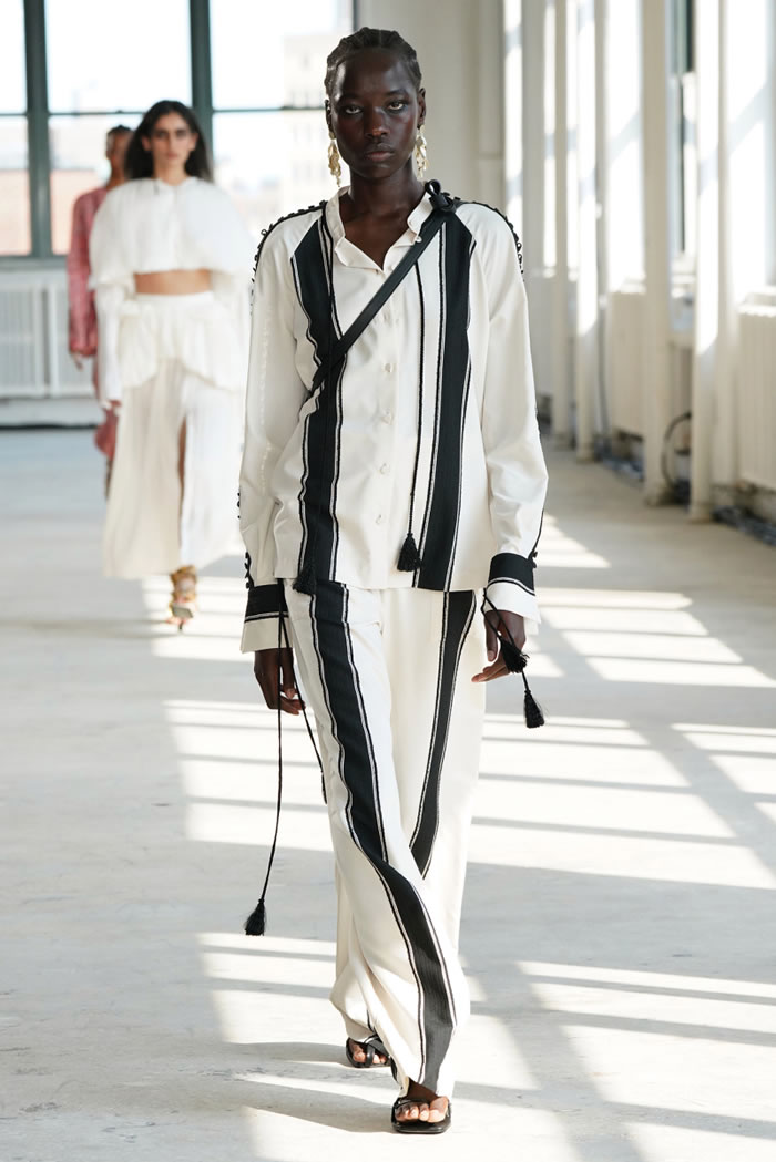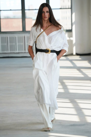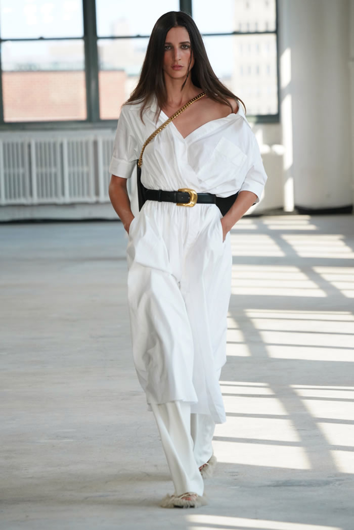 Although Altuzarra did show a smattering of suiting in his Spice Road palette, the linen tunics and easy pants accessorized with coin belts looked great and were perfect for the new work-home hybrid reality (not to mention the heat).