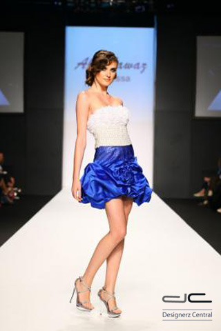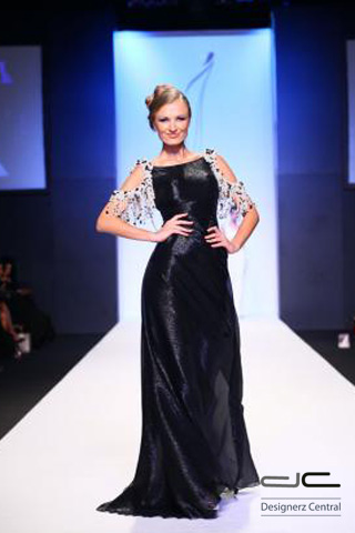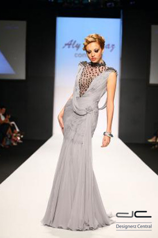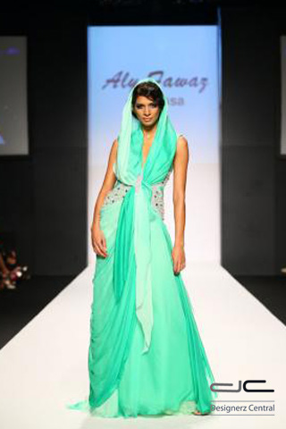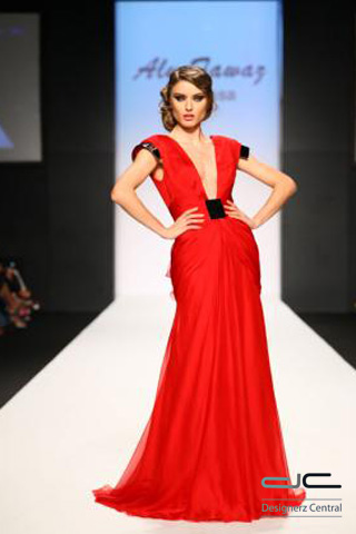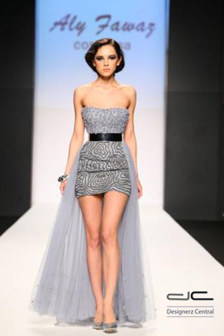 Elegant, luxurious and futuristic approach to fashion design by Aly Fawaz moved out at Dubai Fashion Week.