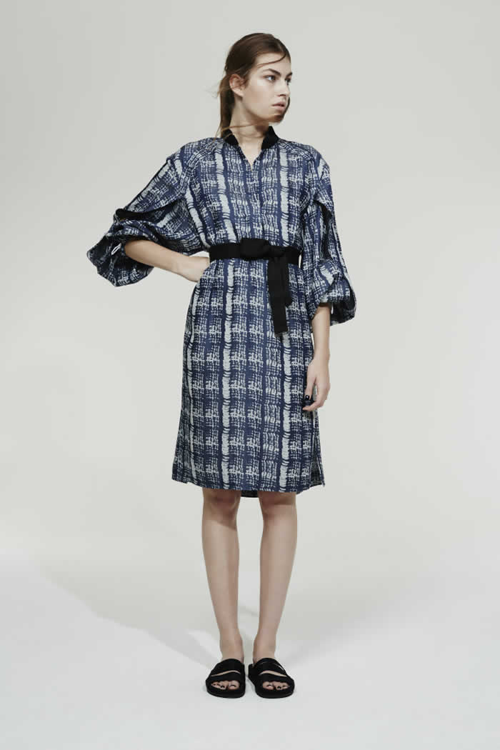 A sleeveless tulle dress in ombré tones of white and blue was cinched with black satin elastic, its sheerness revealing sporty black shorts underneath. And a shirtdress, its skirts done in painterly blue stripes that were inspired by the work of the late artist Helen Frankenthaler, was knotted over an easy pair of embellished denim pants.