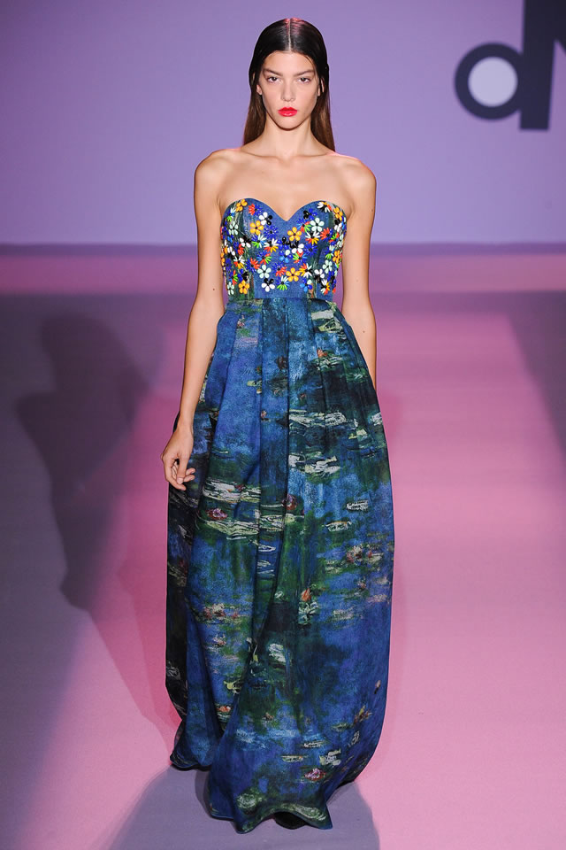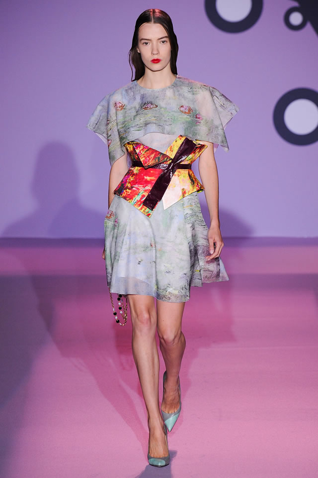 Anyone who has ever visited Giverny, where Monet lived and painted his legendary water lily masterpieces, will probably agree that there is something disjointing about its realness. You are forced to imagine how the artist arrived at his impressions. Today, Andrew Gn proposed his own impression of the paintings, while incorporating graphic influences from Asia (his heritage) and Memphis (the 1980s design movement, not the American city) to produce a collection that was, well, impressive.