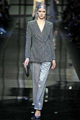 Armani delivered options of look and mood — the elegance of a tailored jacket over pants.