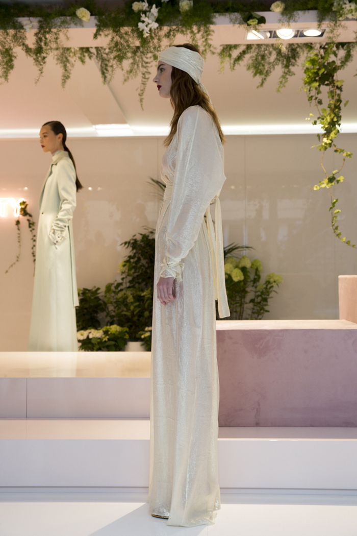 “When I set out to design spring, I was into breaking through this streetwear, hard-edged fashion moment I wanted a collection that is soft and elegant and feminine and where women did not have to rely on clothing to make them look any other way, where they can just put on a piece of clothing and it can be one with them an easy, harmonious, fluid, gentle collection,” stated August Getty at his presentation at the Four Seasons Hotel.