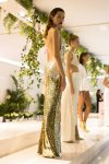 On stage, his vision translated well: models wore glamorous looks with red carpet appeal such as a silver and gold beaded white strapless gown, evening suits in creme and white, Swarovski embroidered skirt in mint with a matching evening blazer, and an allover sequined cropped top with white wide-leg trousers