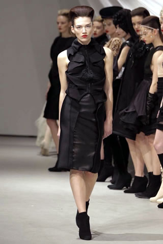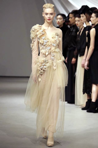 Nude was the news at Augustin Teboul’s presentation. For the first time designers Annelie Augustin and Odély Teboul included color, a pinky beige, in their intricate crystal-encrusted designs — a move meant to tone down their signature Goth tendencies.