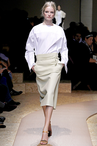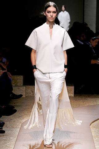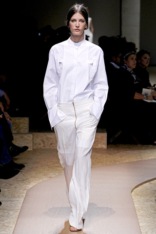 Philo is clearly obsessed with clean lines and crisp tailoring, and this minimalist chic has been the focus of a whole new wave of more subdued pieces taking to the runway. The Spring/Summer 2011 collection has proven to be more of the same with crisp whites, starch leather pieces and a pattern or two thrown in for good measure. What is so fascinating about her tailored pieces is that they stand alone void of pattern, but somehow they enthral and capture your attention spectacularly.