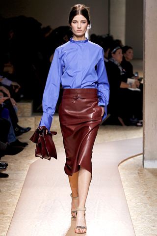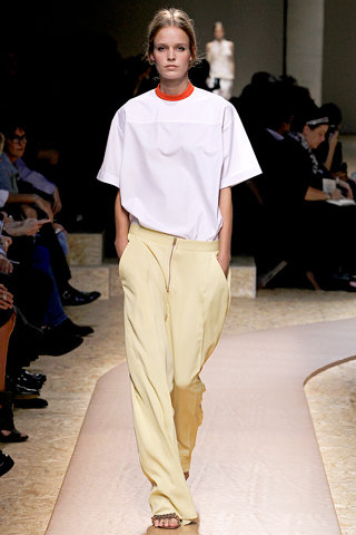 Phoebe Philo’s influence extends from the highest echelons of style is there an editor in the front row who hasn’t bought Celine’s structured two-handle tote all the way to the high street. Backstage, she insisted that she hasn’t noticed "Don’t have time to shop," she said. Still, if what she did on her runway today wasn’t an intentional rebuff to her copy artists, she’s just made their jobs a whole lot more difficult.