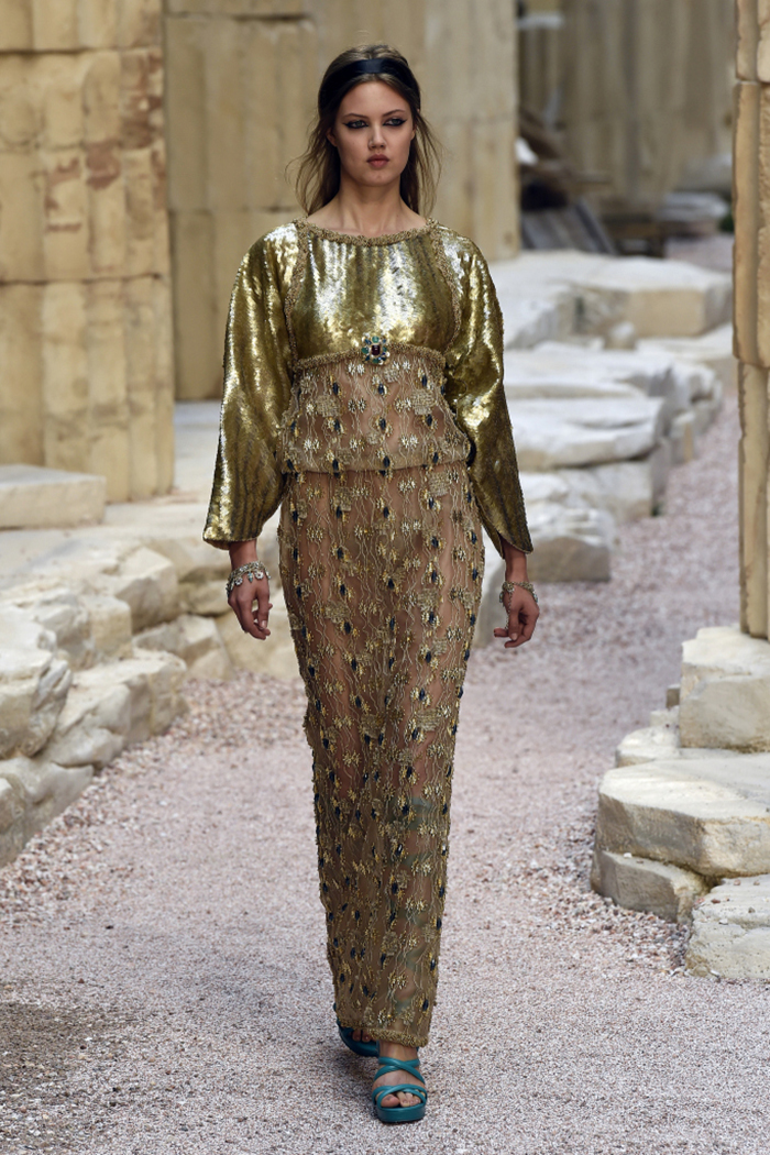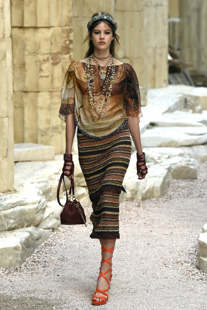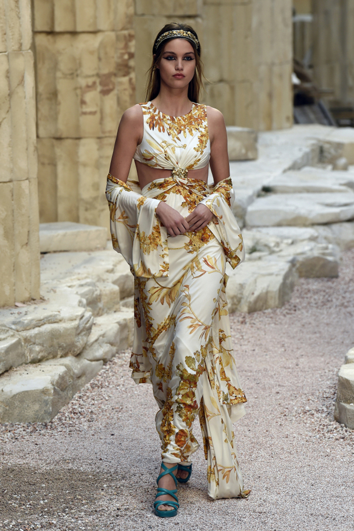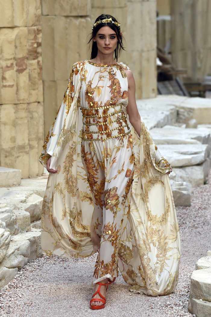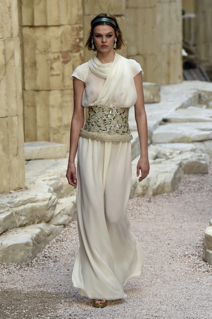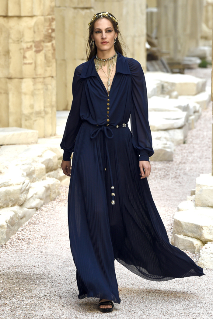 “It had nothing to do with a country. Reality is of no interest to me. I use what I like. My Greece is an idea,” the designer, who skipped postshow interviews this season, said in notes provided by Chanel.
