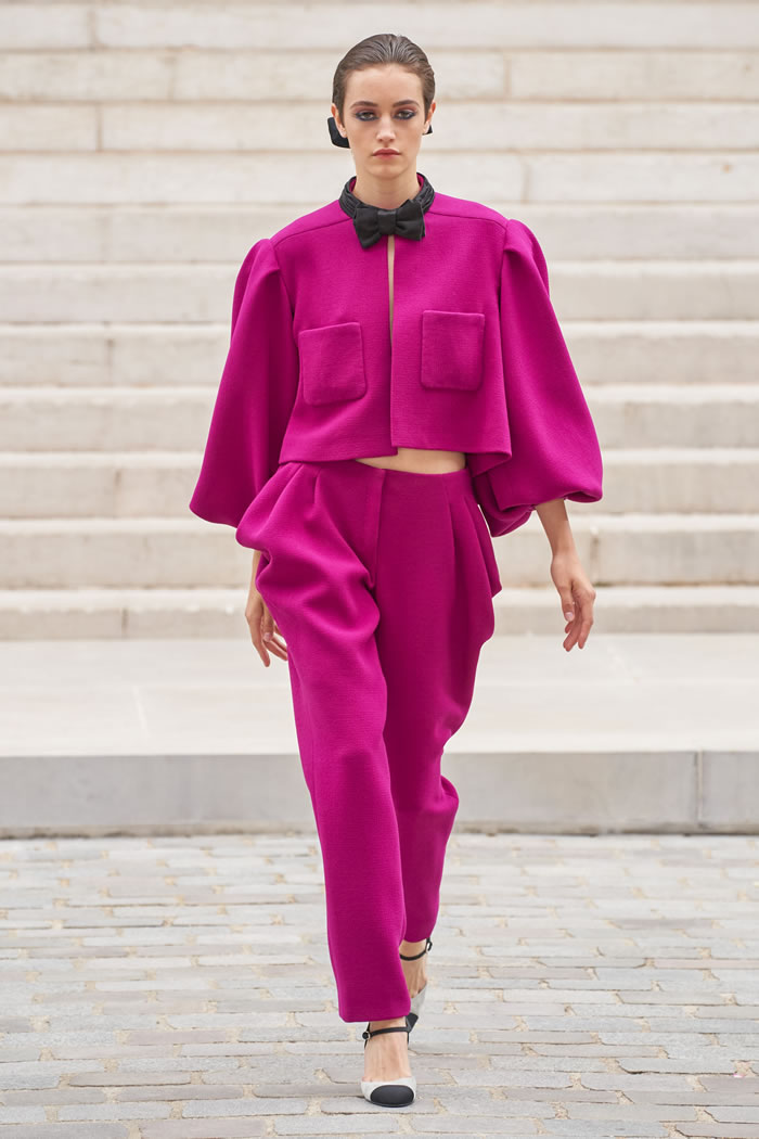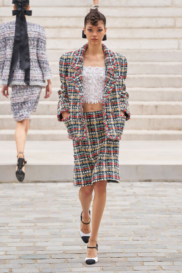As the girls lined up backstage in the galleries of the Palais Galliera fashion museum, currently hosting the remarkable exhibition Gabrielle Chanel: Fashion Manifesto, Viard’s clothes suddenly found themselves in dialog with Coco Chanel originals from the 1920s and ’30s, a garden of handcrafted beauty.