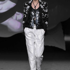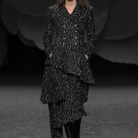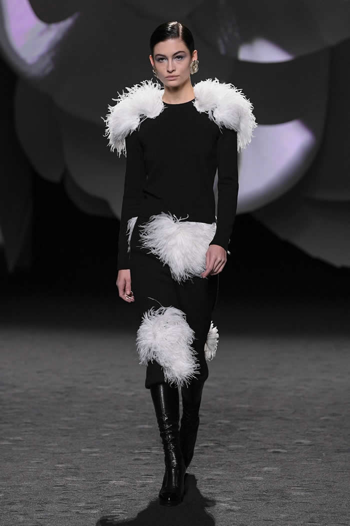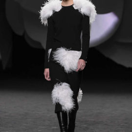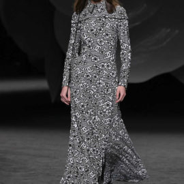Viard had organized a giant symbolic white camellia as a set and had a real one placed on every guest’s seat, but she wasn’t pressing the anniversary angle. “The camellia is more than a theme, it’s an eternal code of the house,” she said in her press release. “I find it reassuring and familiar, I like its softness and its strength.”