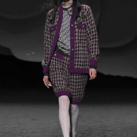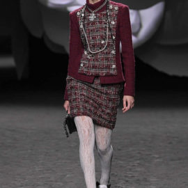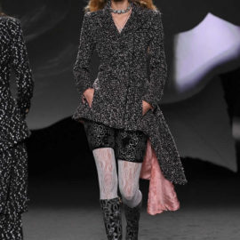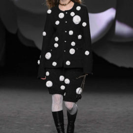 While staying within the guardrails of Chanel’s femininity and decorativeness, his former first assistant and successor have added her own dash of quirkiness to the mix. Some of the suits came paired with tweed bermudas, bloomers, or leather shorts, teamed up with white floral lace tights and knee boots.