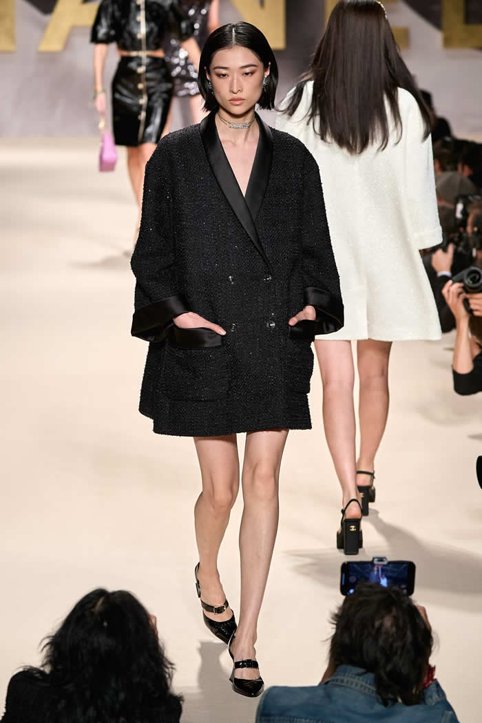 With the Grand Palais undergoing renovations, Chanel switched to a temporary replacement venue near the Eiffel Tower for its first runway show with an audience in 12 months. The dark, cramped setting afforded less of a stage for peacocking Chanel clients but gave creative director Virginie Viard an excuse to play with the show format.