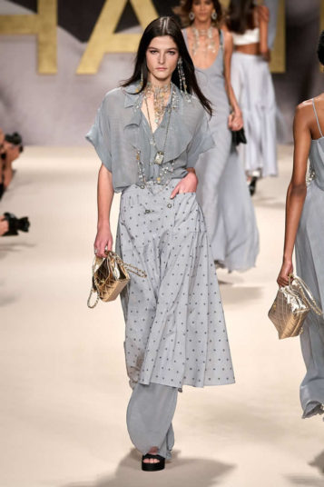 Flou tends to be Viard’s weak point, and this show was no exception, with a closing sequence of chiffon dresses in an oversized butterfly print that felt like a downer, compared to the rest of the colorful lineup.