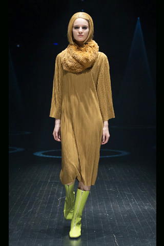 Raw, heavy denim and inverted denim are prominent in A/W collection. Texture is important with crinkled jersey, fleece, leatherette, pleated chiffon and jersey. Clear sequins on knits, flannel, denim and jersey in somber colors on crazy crisp print are very much in.