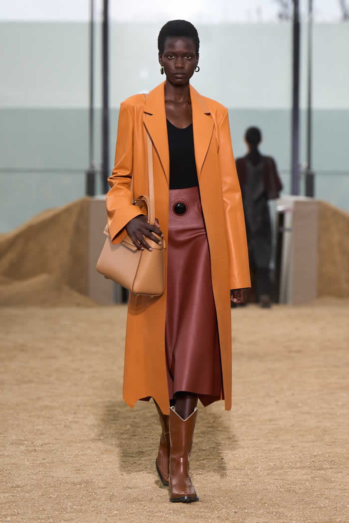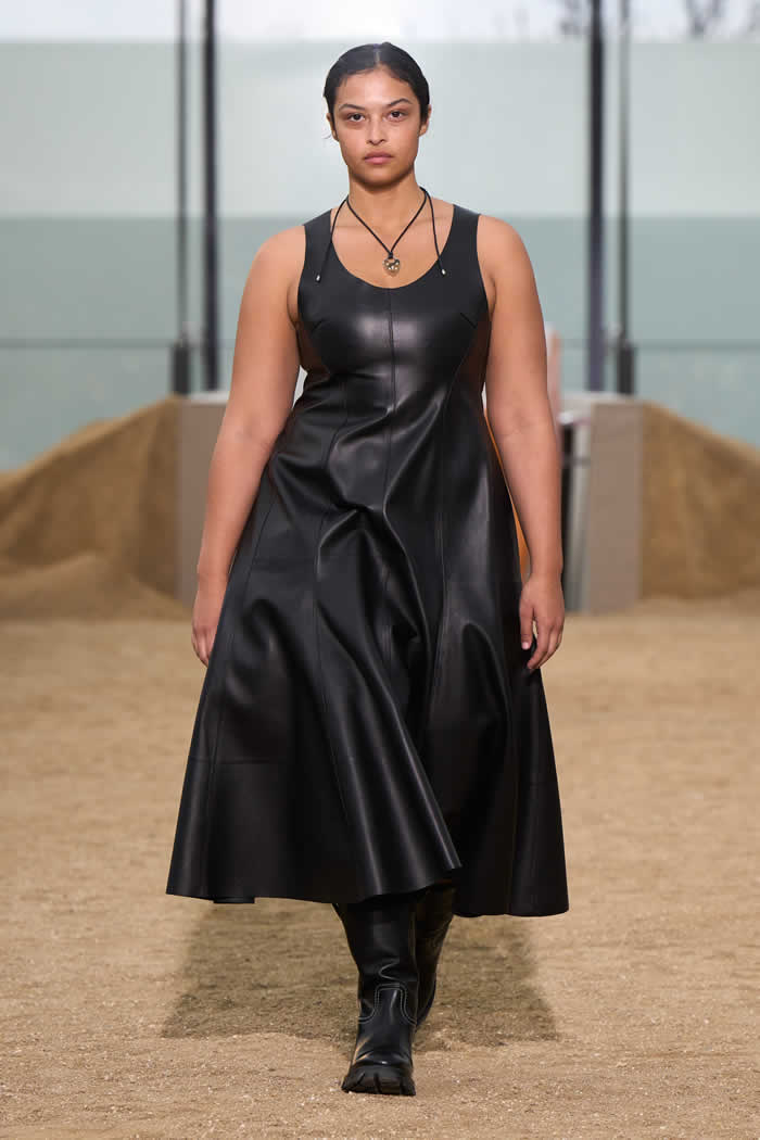 “For me, leather is a by-product of the meat industry,” Hearst said in a preview. “So, as long as you know where it’s coming from, and you have traceability and it’s done in a proper way, you’re using waste.” Her leather comes from Italian suppliers, whose tanning processes are compliant with European environmental standards.