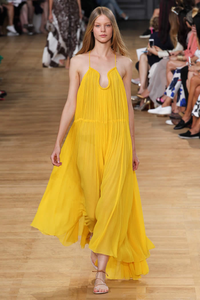 While it’s true it’s not a sentiment you’d maybe want to hear from every designer don’t go looking for Rei Kawakubo to say it anytime soon that’s not exactly the point here. The thing is, it’s precisely what Chloé, which always enjoyed a very direct and straightforward relationship with a girl when she wanted to look cool/hot/effortless/casual, should be. And since taking charge of the house three years back, this was undoubtedly Waight Keller’s best (and loveliest) articulation of that partnership, rooting it in the sun-kissed, sexually liberated seventies, the decade that always seems oh so very Chloé. (The collection also provided a fine if unwitting tribute to the house’s founder Gaby Aghion, who passed away on Saturday.)