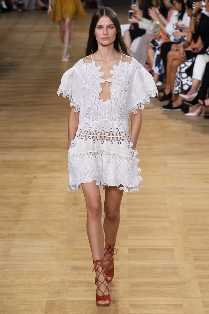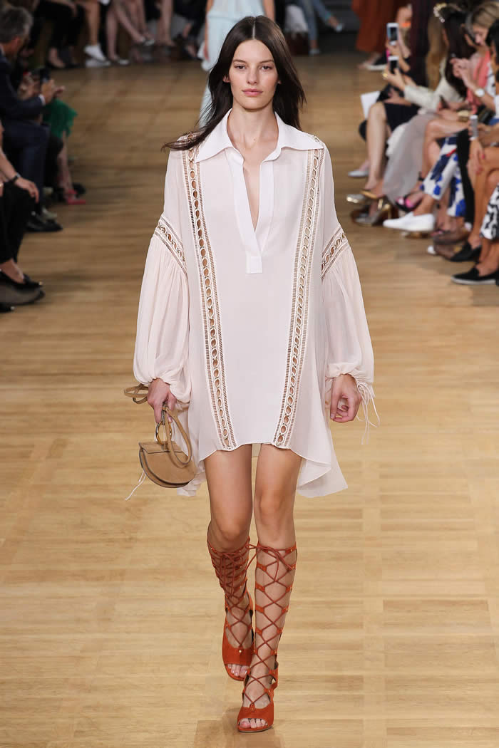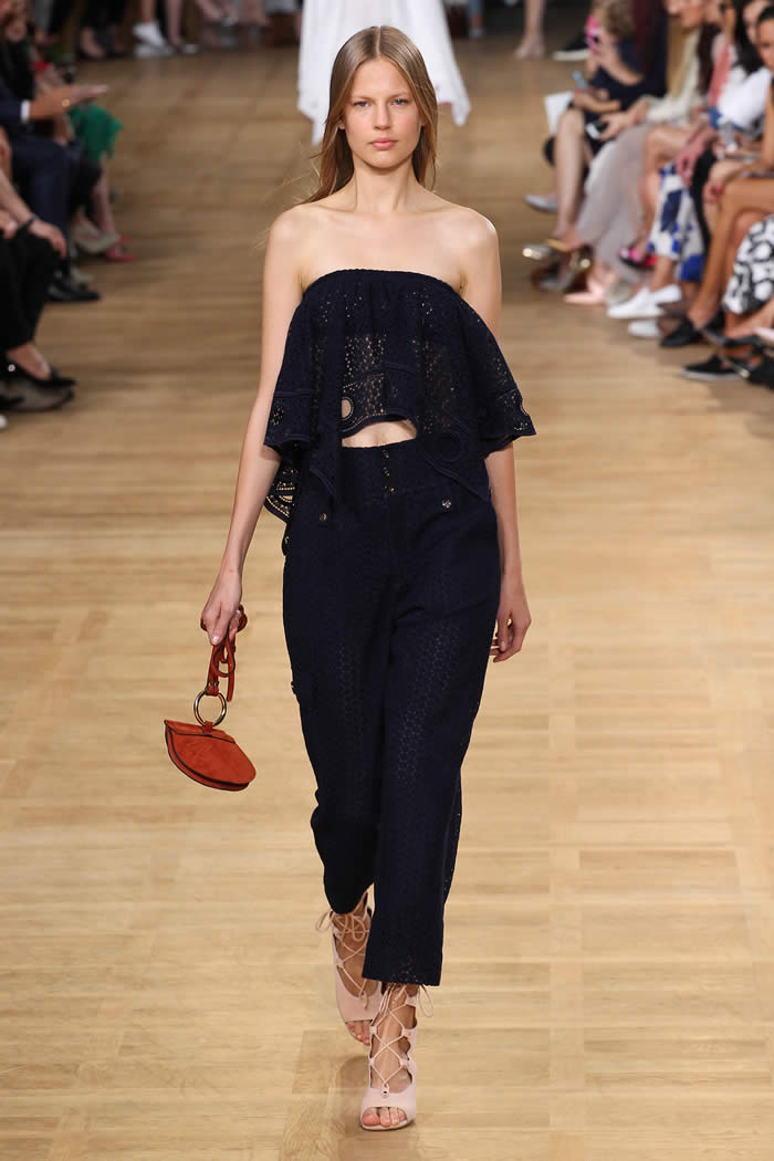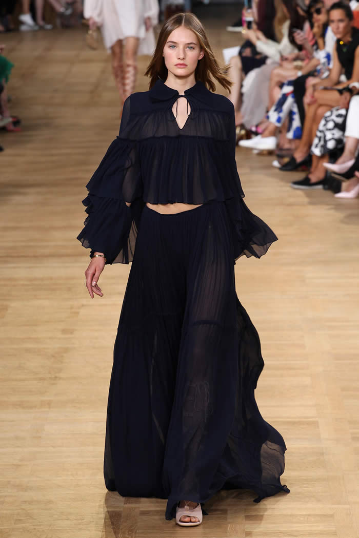 You can’t imagine the palpable sense of relief when you go backstage to chat with a designer and his or her take on the collection is this: “Everything is just meant to be clean and simple; strong, honest clothes that don’t get over-complicated.” Today’s recipient of the Keeping It Real award goes to Chloé’s Clare Waight Keller, for it is she who made that statement in the moments before curtain up, while broderie anglaise lace, crisp topstitched denim, and gentle plissée chiffon passed by in a flurry of preshow activity.