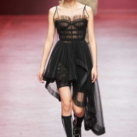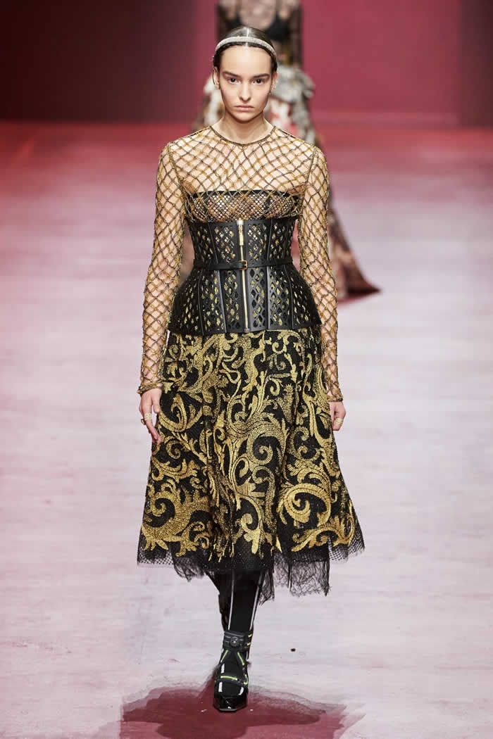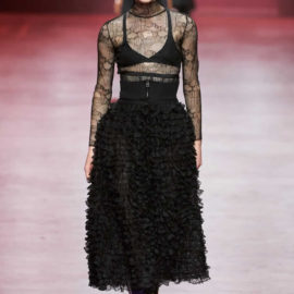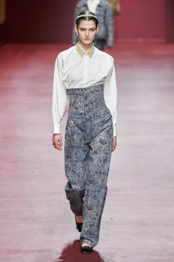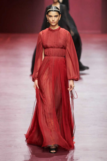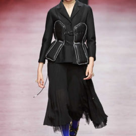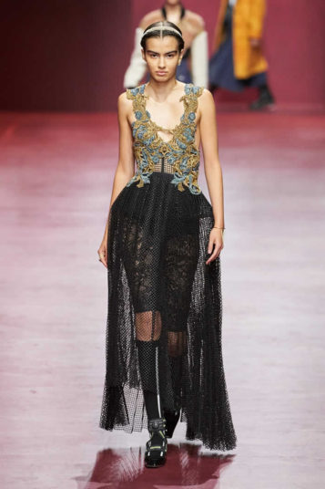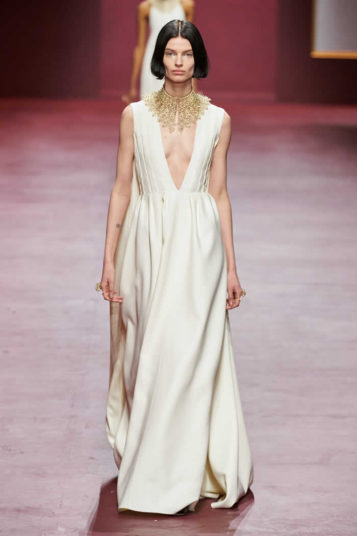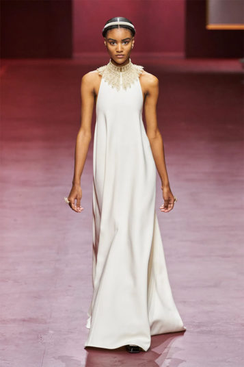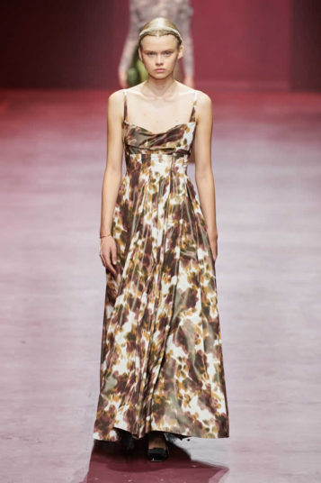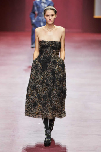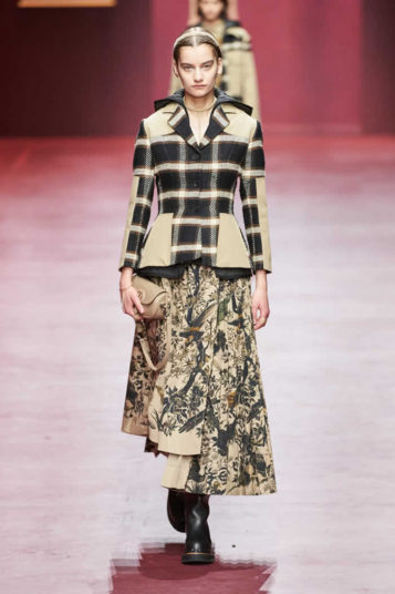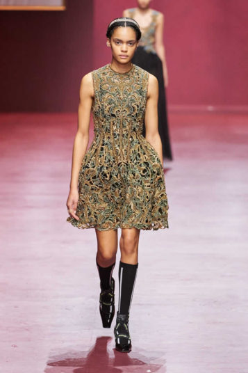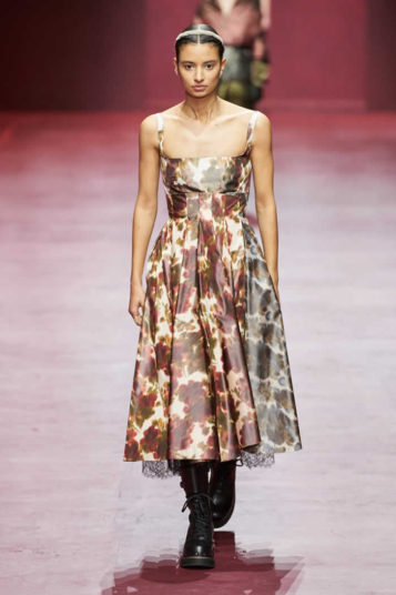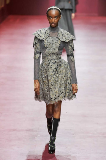 But still: this collection was her most daring bid yet to engage Christian Dior—and its Bar jacket, corset, and New Look swirly midi—with advancing modernity and technology. With a side-nod to Dune, and, of course, Chiuri’s underpinning framework of female empowerment, courtesy of her relationships with feminist artists.