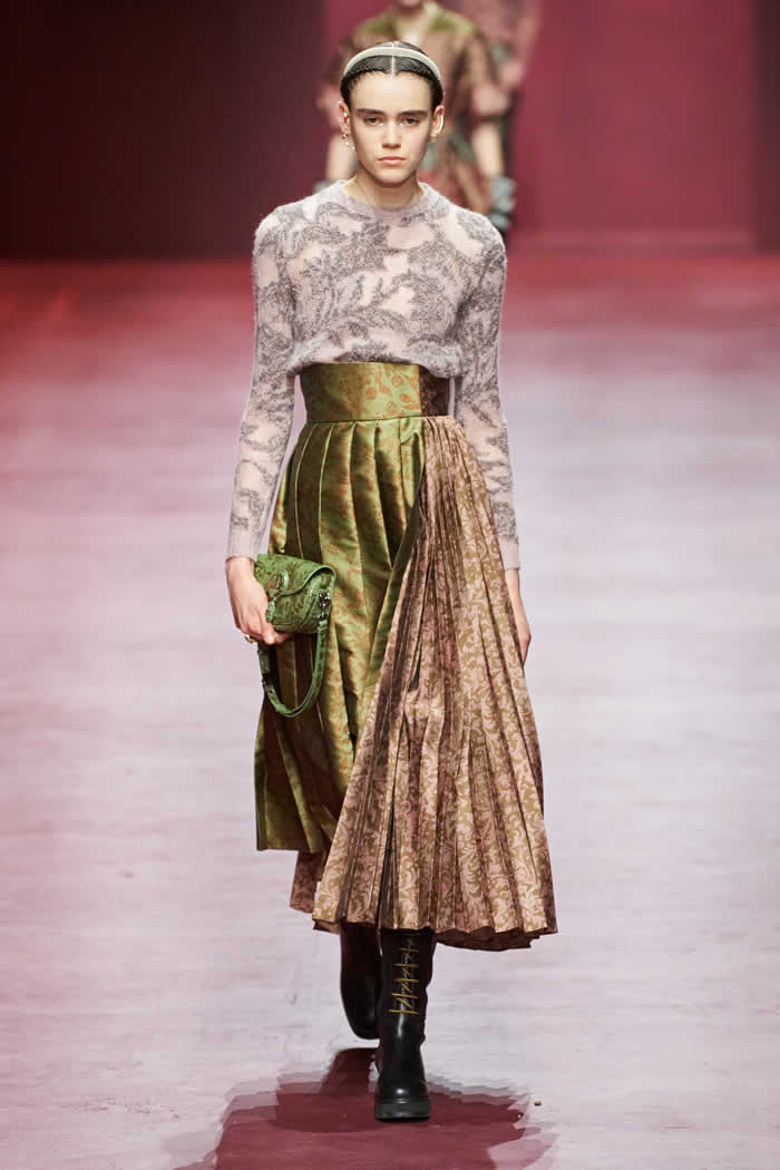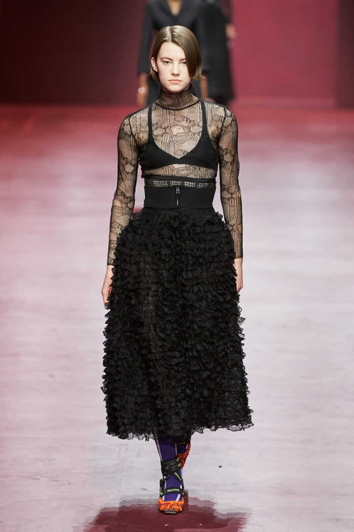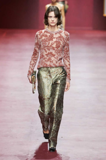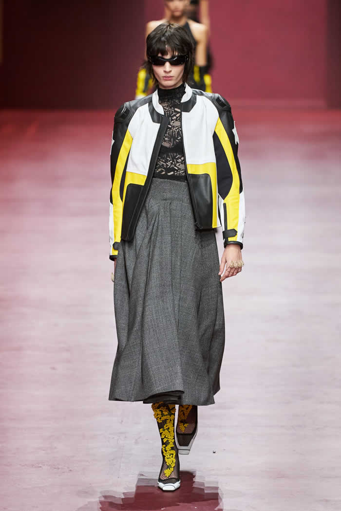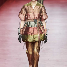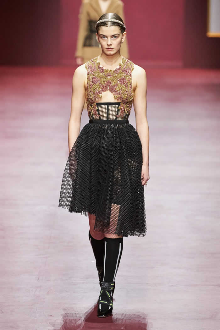 That tension was the unintended consequence of the toxic twist of timing. The images of protection and hinted-at derivatives of armor which immediately surfaced to the naked eye in the collection cannot have had anything directly to do with how Maria Grazia Chiuri had planned out the spirit and execution of her fall show months ago.