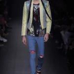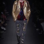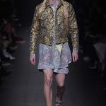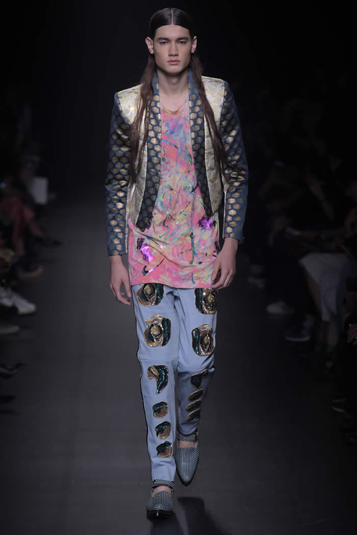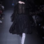 Iwaya’s men’s wear a mishmash of Baroque, sport and disco influences seemed like a disjointed insert in this show. Given looks such as a track suit in a rose pattern that resembled a cheap tablecloth and skinny pants with lip appliqués that opened when the models’ knees bent, the ladies made out better this time around