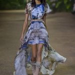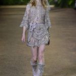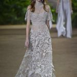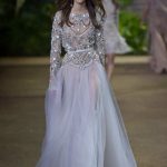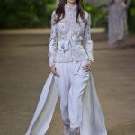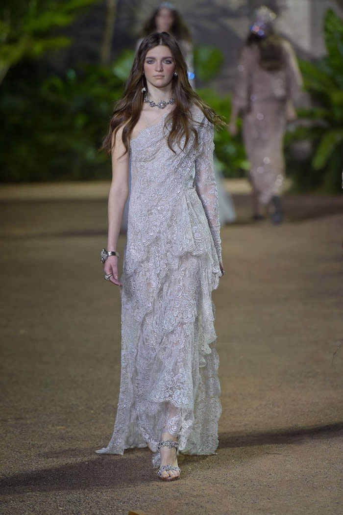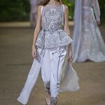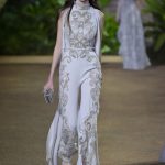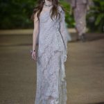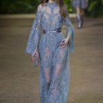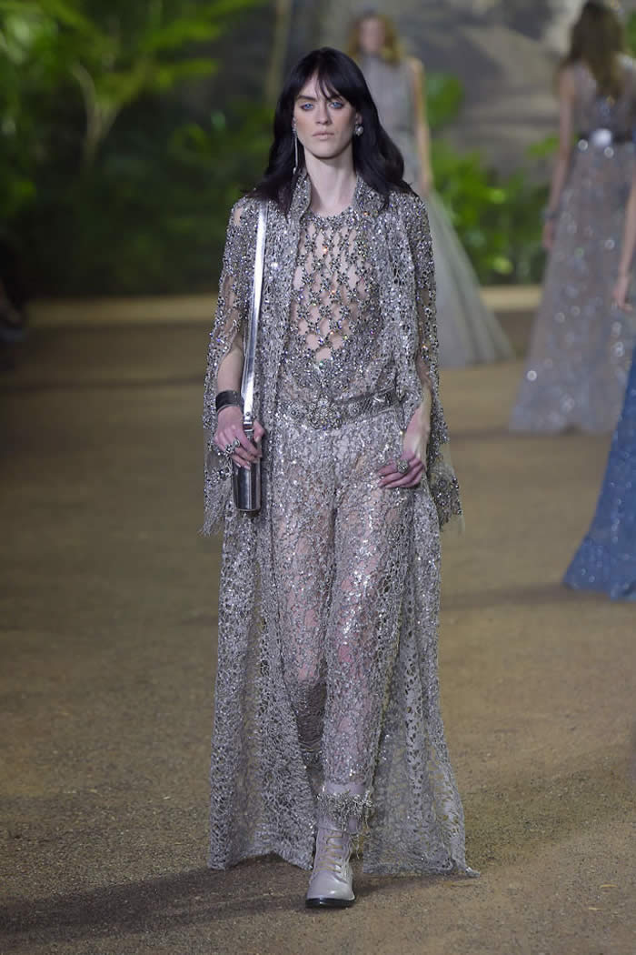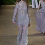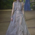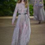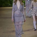 They were lovely, and exemplified Elie Saab’s knack for veiling the body with dense, yet delicate ornamentation. Forgetting short interludes of mother-of-the-bride blues, this show cast a spell with its pale shades of blush, clotted cream and antique silver.