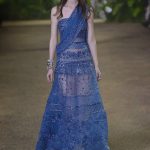 Stumbles aside, this was an exceptional outing for Saab. His Indian theme added an exotic tinge to his sparkly gowns and cocktail dresses, swags of fabric over-the-shoulder telegraphing the gesture of a sari. It was also unleashed a torrent of new elements, including silky pants, spangled salwar-kameez ensembles, and breezy dusters.